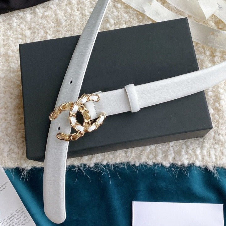 CC WOMEN'S BELT 3.0CM BUCKLE MULTICOLOR LEATHER WHITE