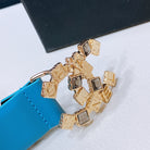 CHANEL BELT 3CM IN DODGER BLUE AND BLACK LAMBSKIN WITH CRYSTAL GOLD HARDWARE