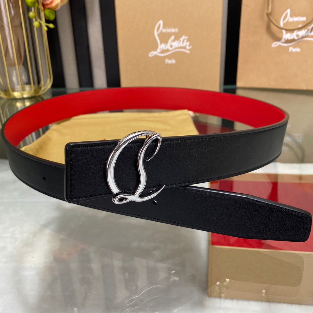 CL Logo Belt with Silver Buckle Black Red Cowhide