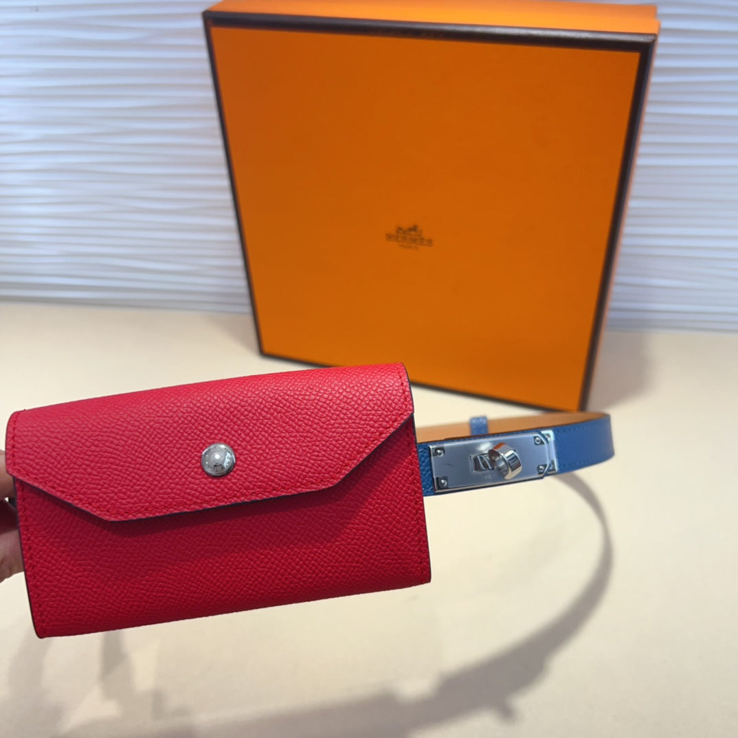 HM KELLY CHERRY RED POCKET 18MM BELT NAVY BLUE LEATHER GOLD HARDWARE