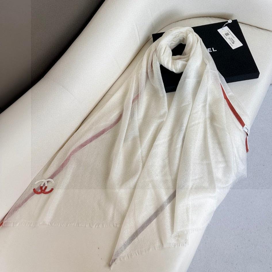 CC Scarf 180 CM In White With Red Border Cashmere Silk 287510