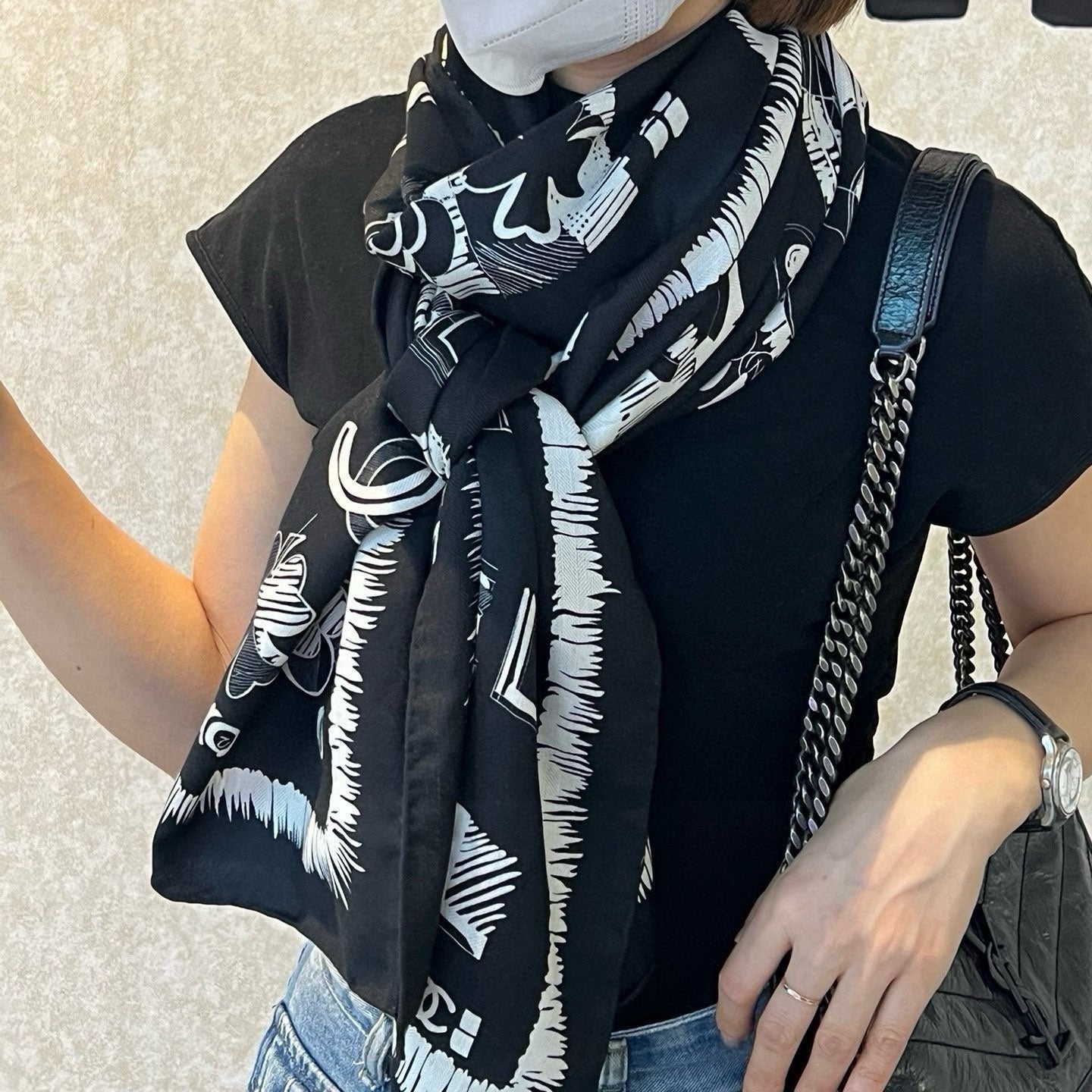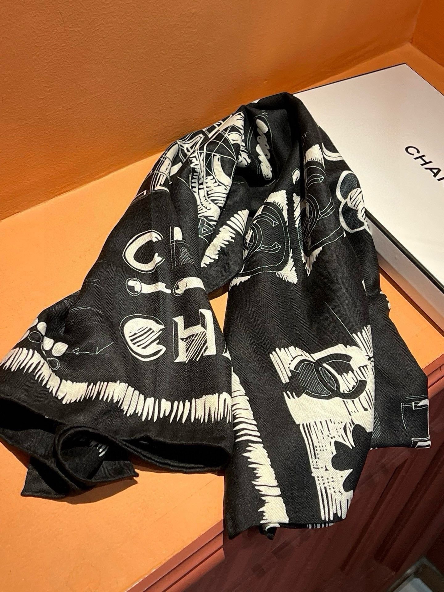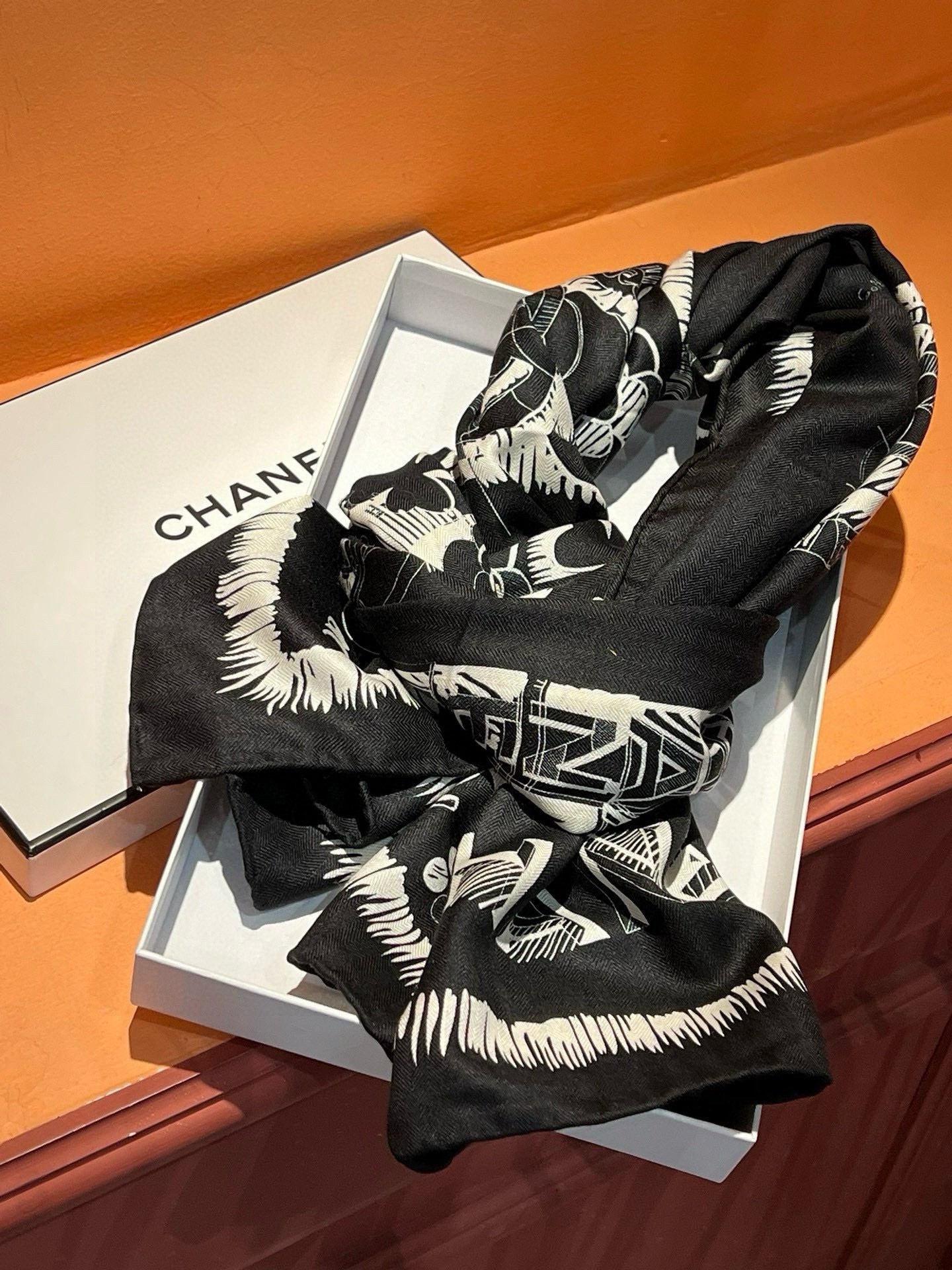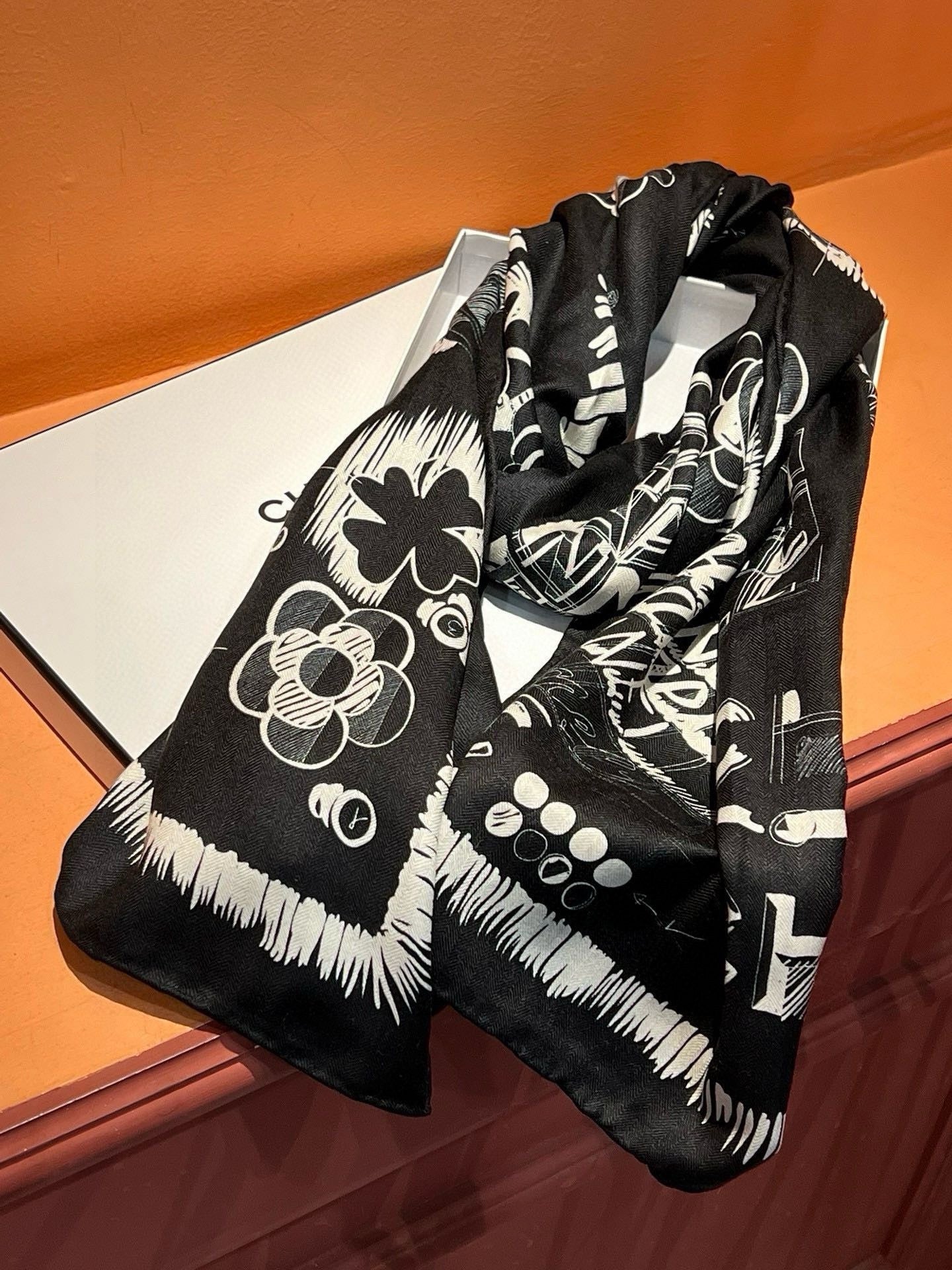 CC Scarf 185 CM In Black White Cashmere Silk 182459