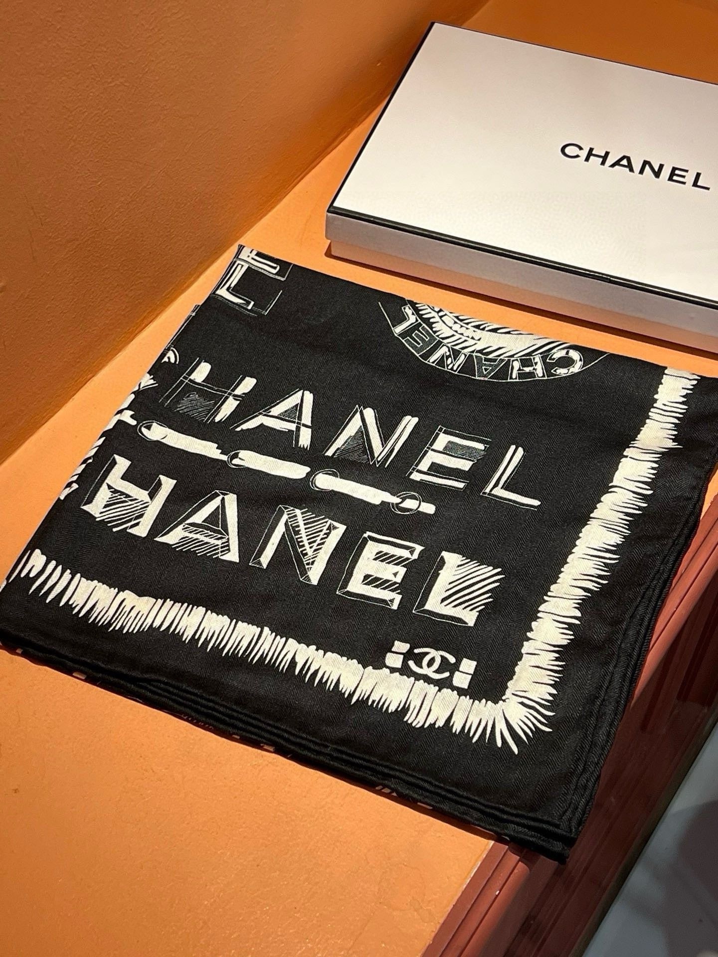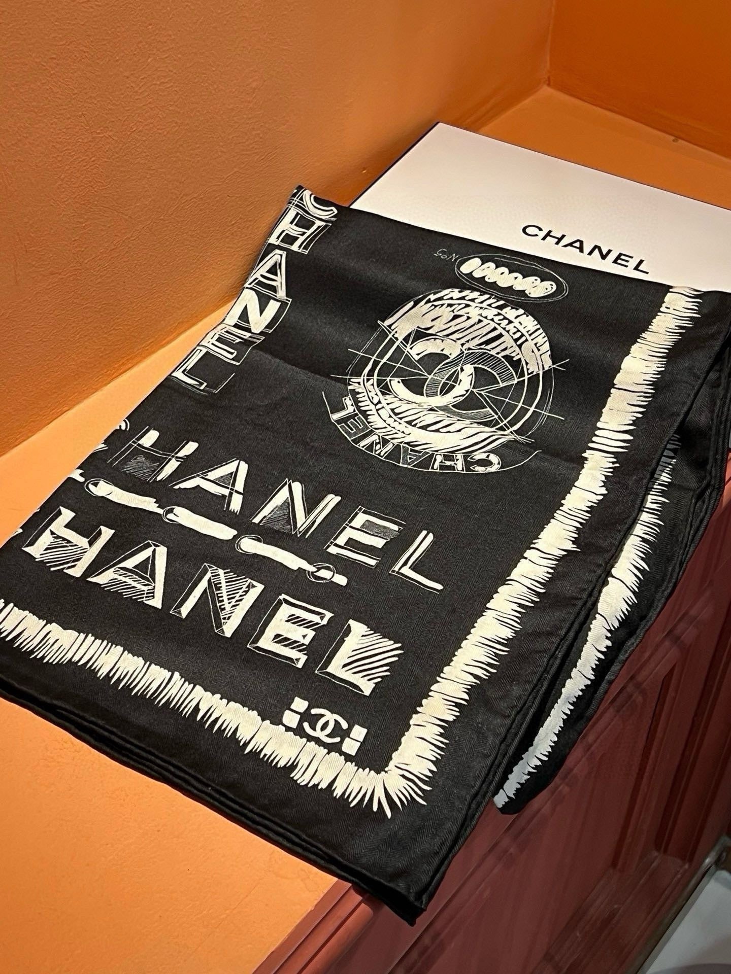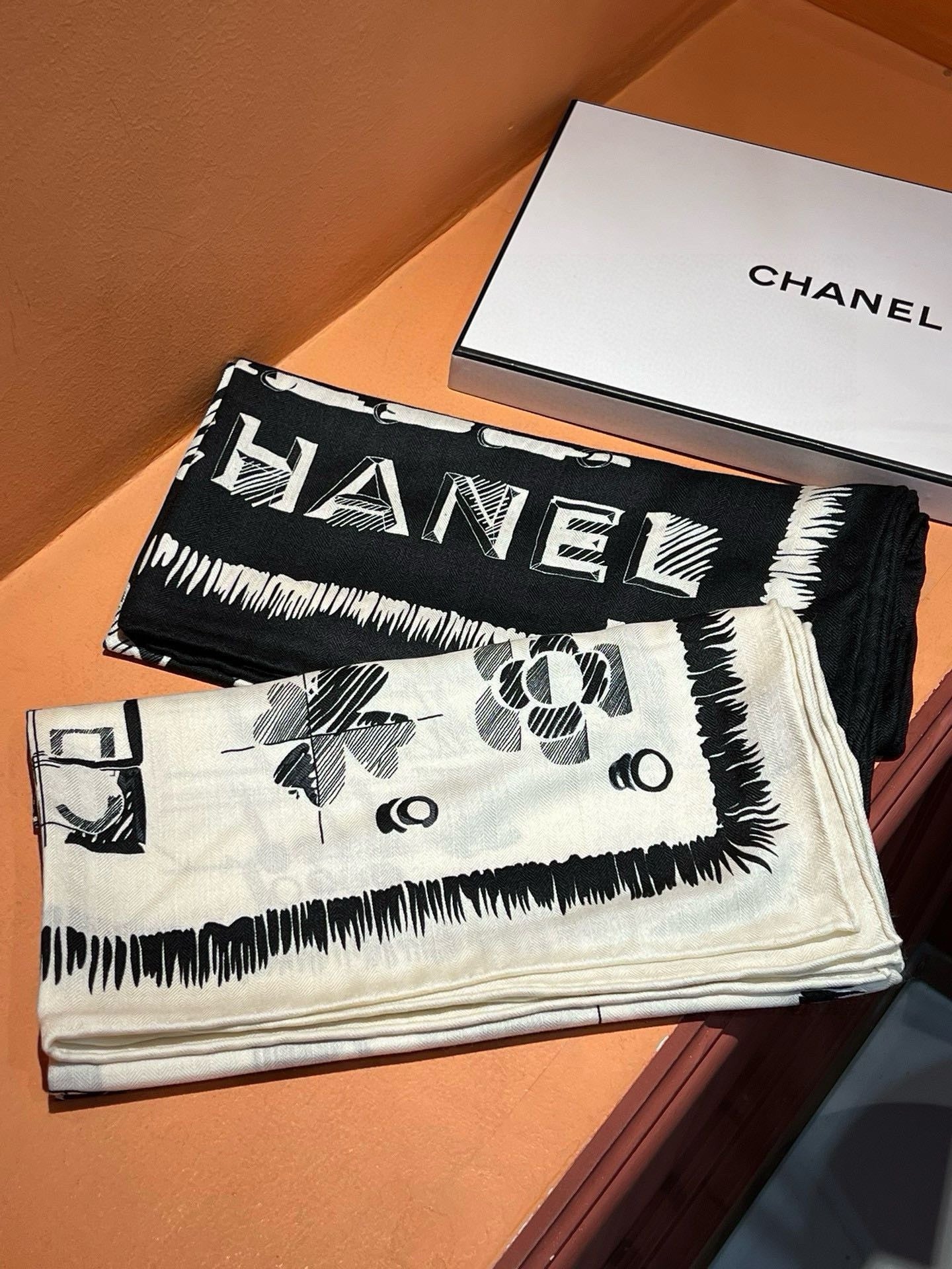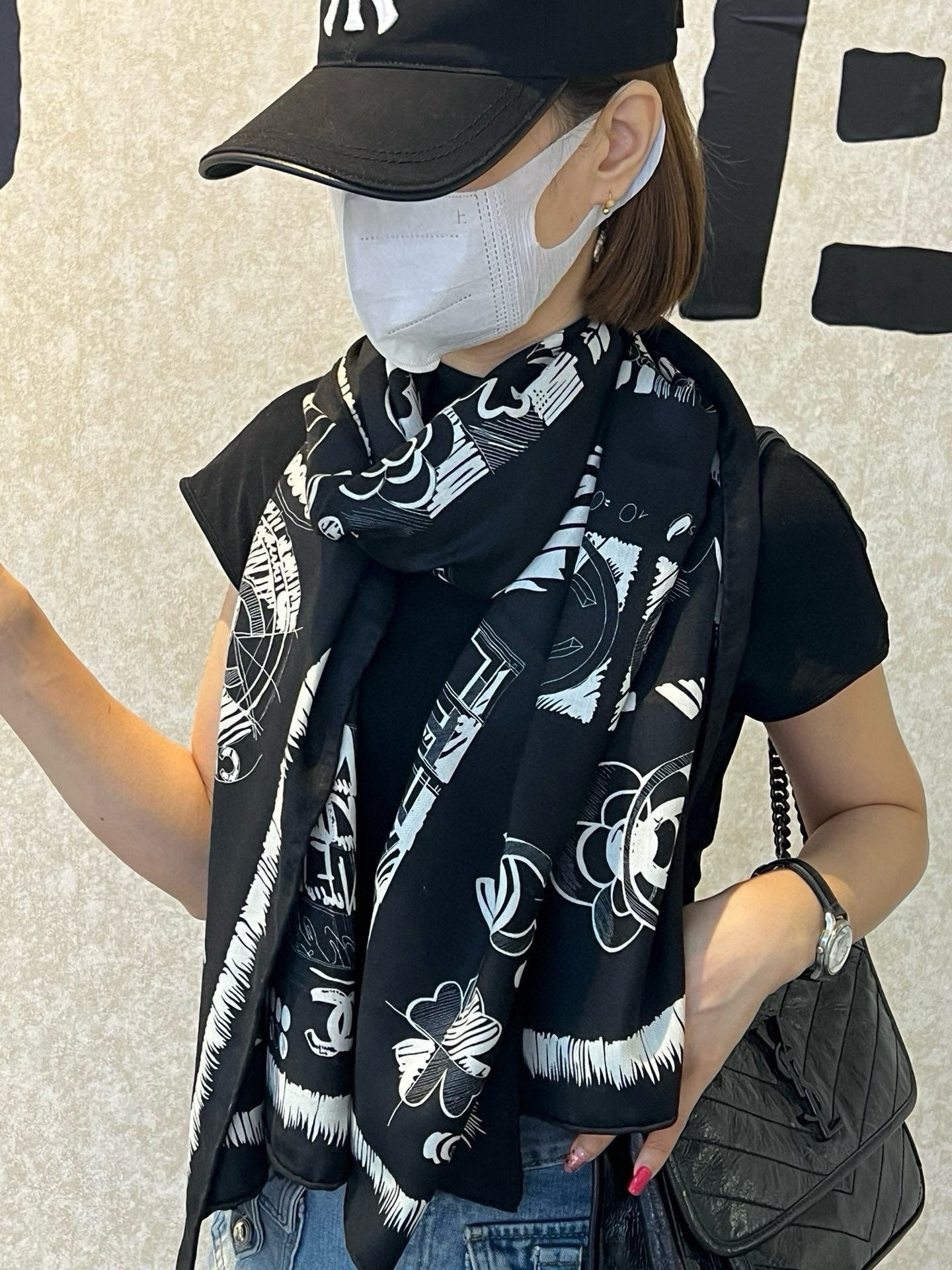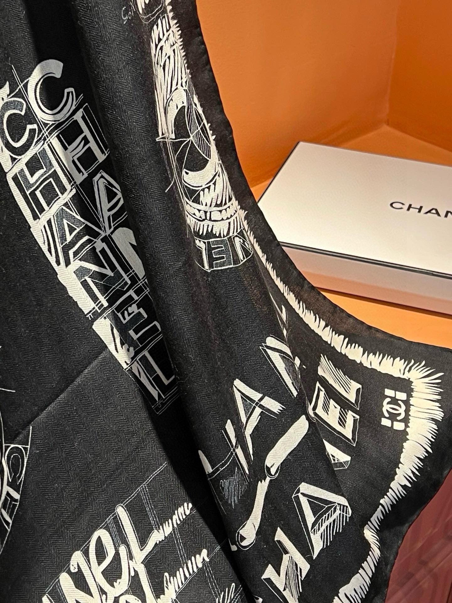 CC Scarf 185 CM In Black White Cashmere Silk 182459