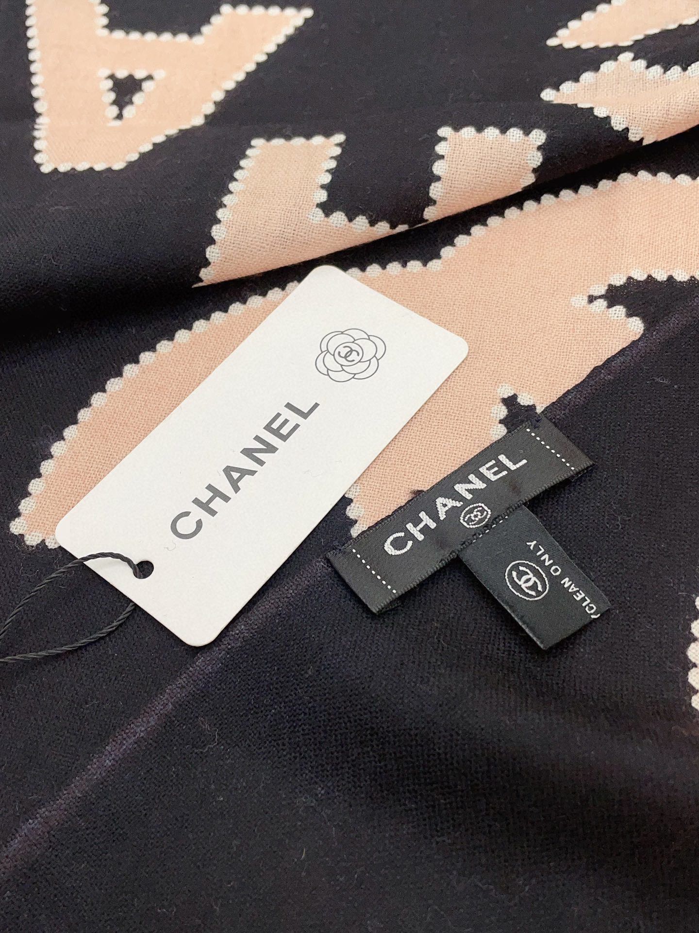 CC Scarf 200 CM In Black Mix Beige Silk Cashmere 324746
