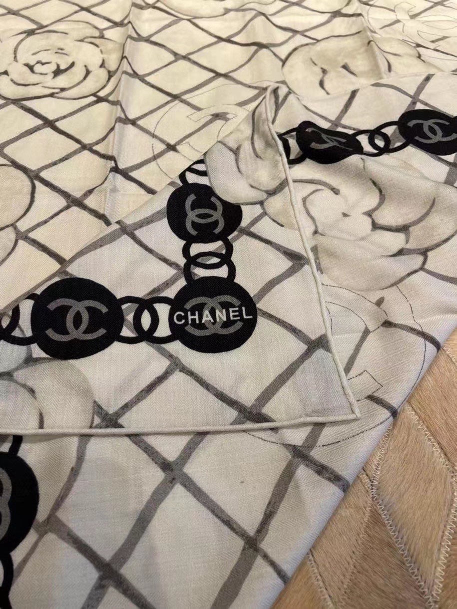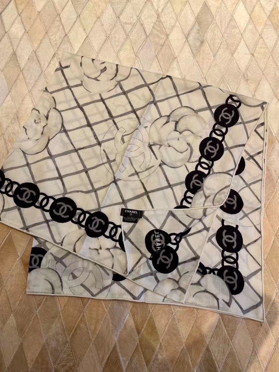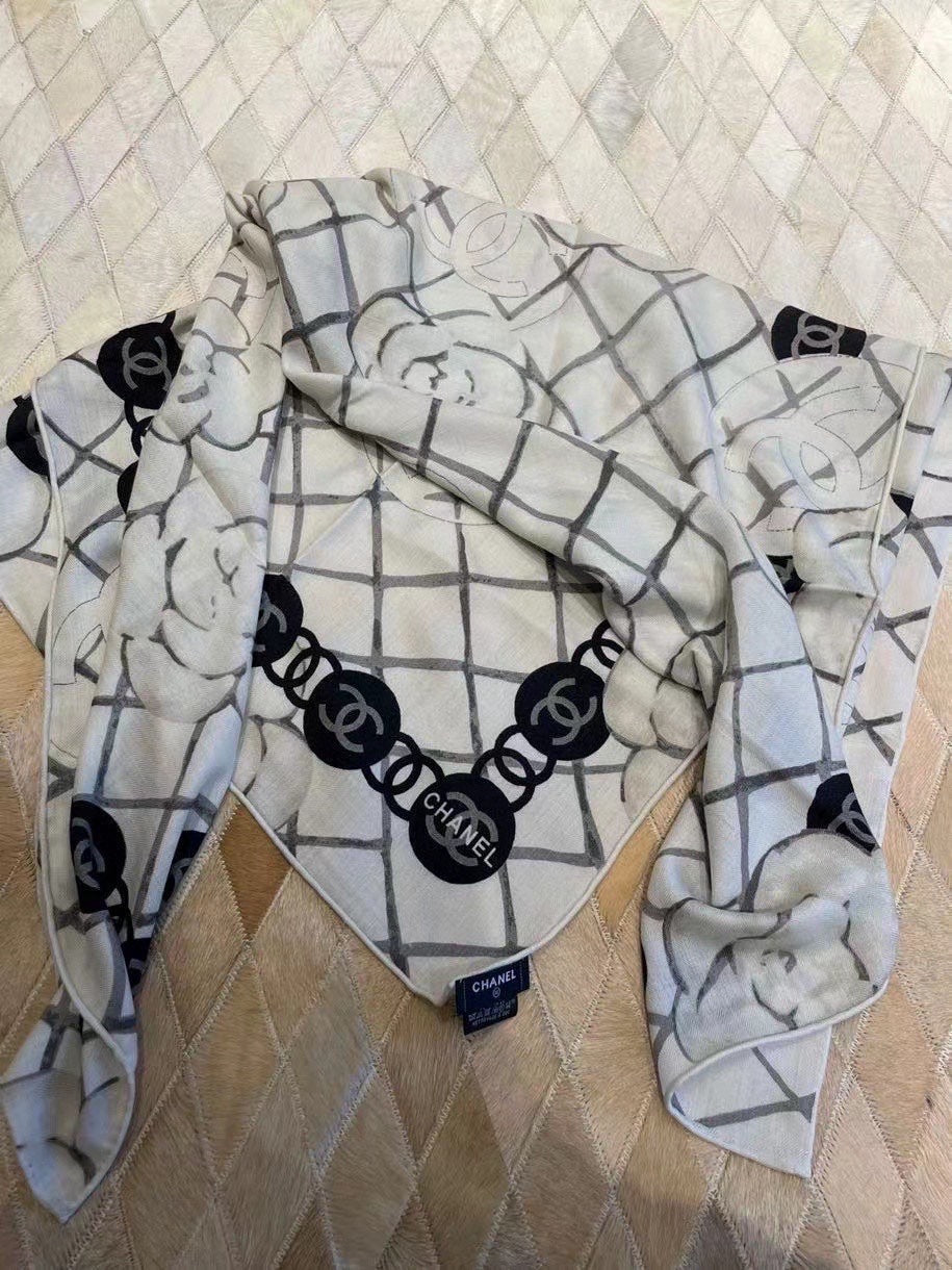CC Square Scarf 110 CM In White Mix Black Camellia Print Cashmere Silk 296623