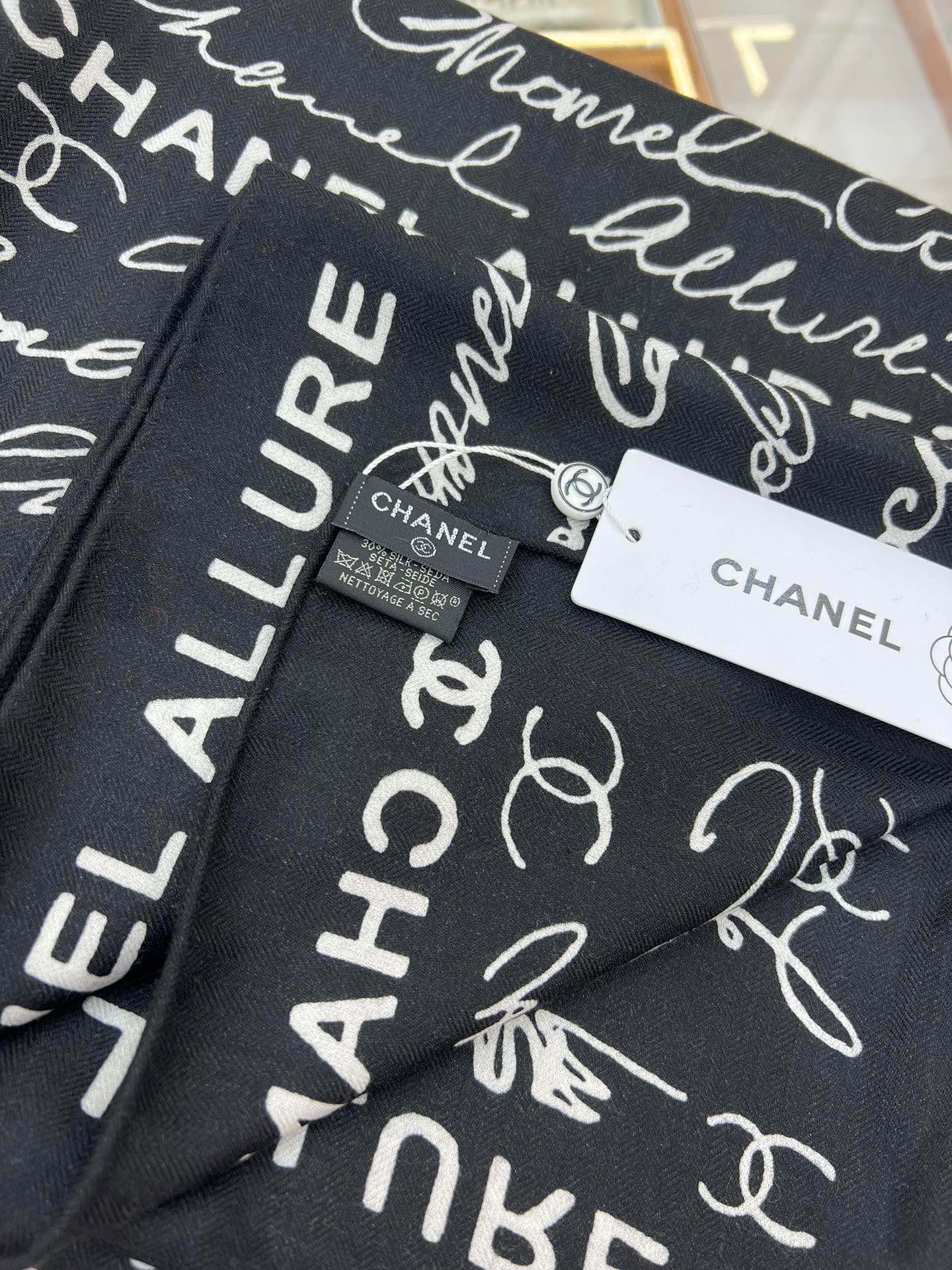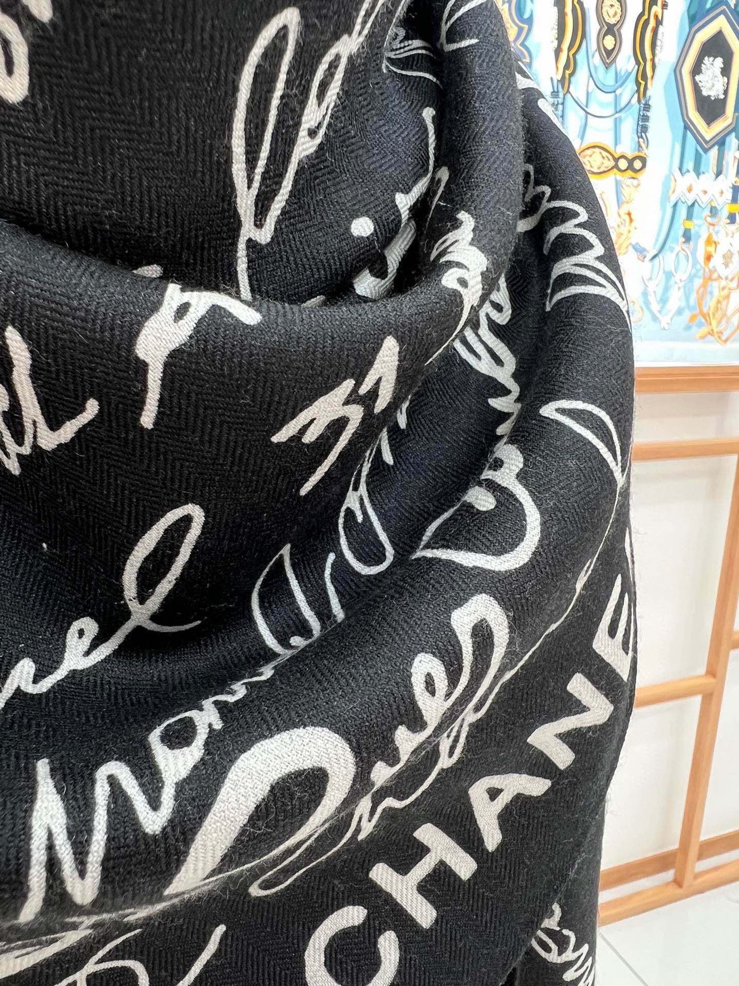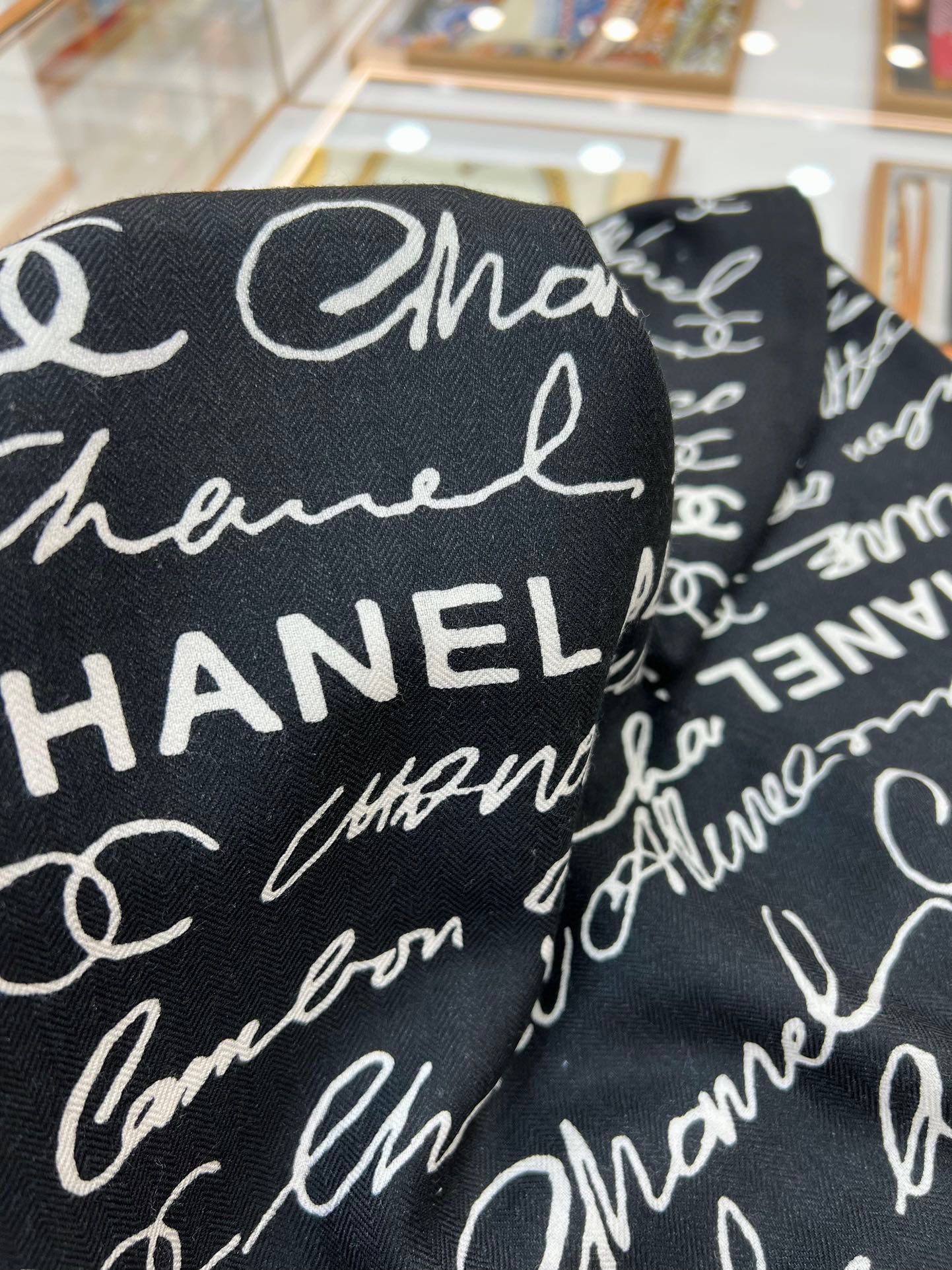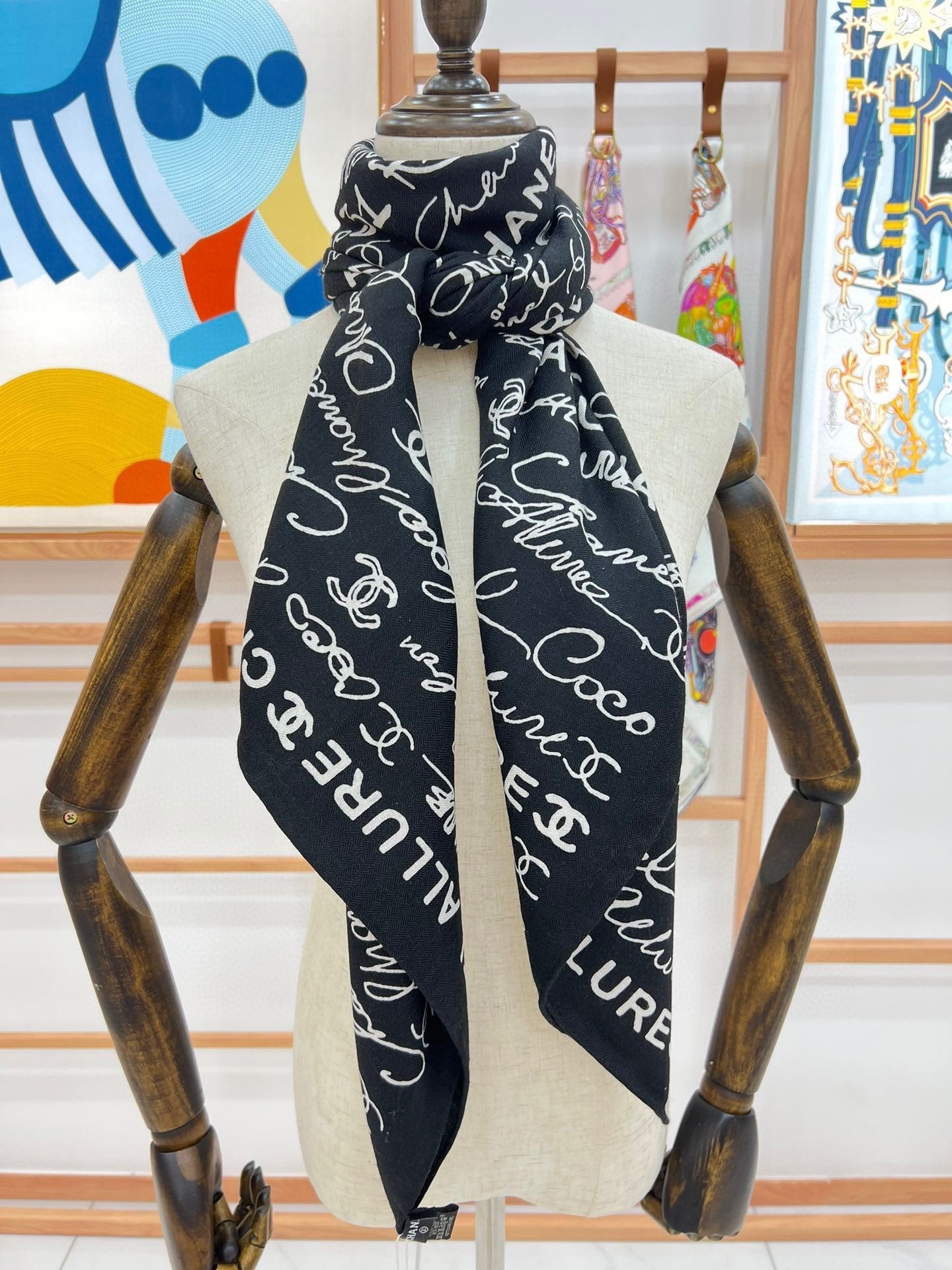 CC Square Scarf 140 CM In Black With White Text Cashmere And Silk 286378