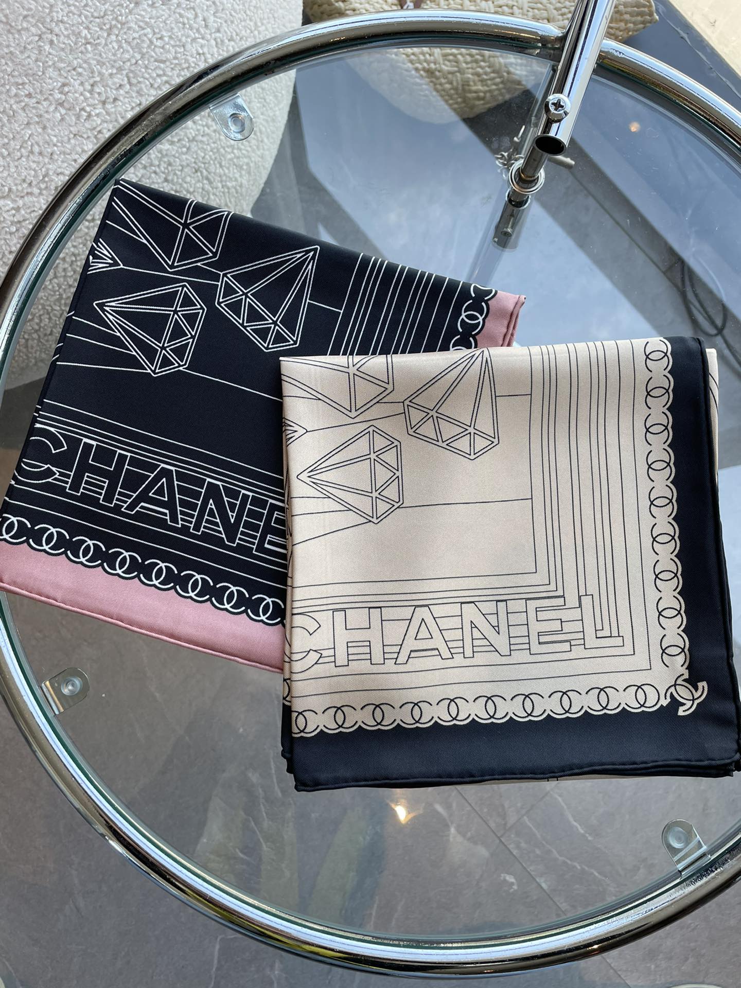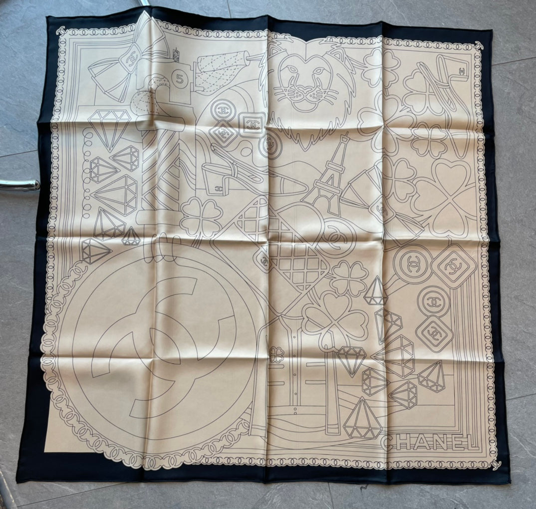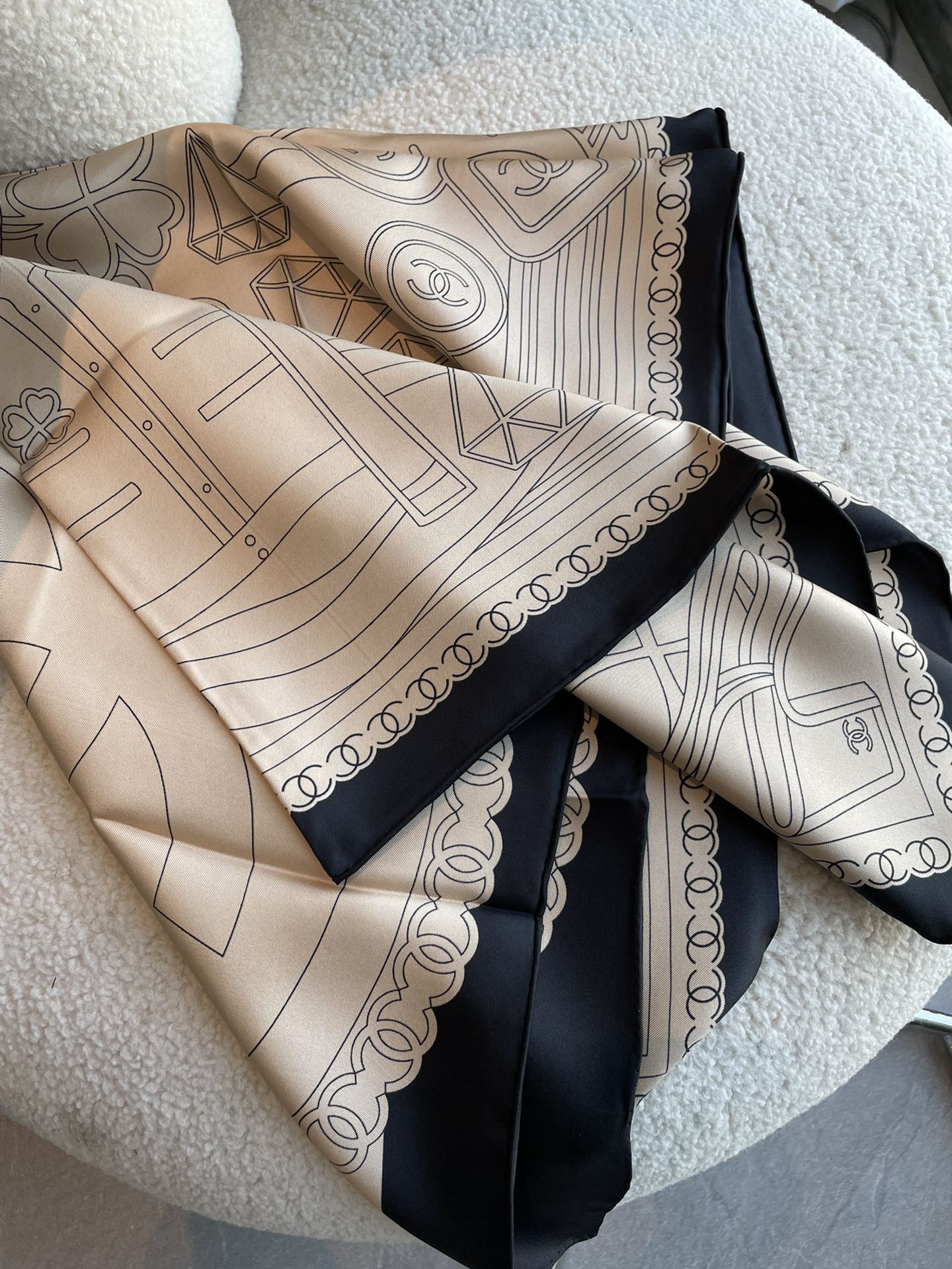CC Square Scarf 90 CM In Beige Mix Black Cashmere Silk 288708