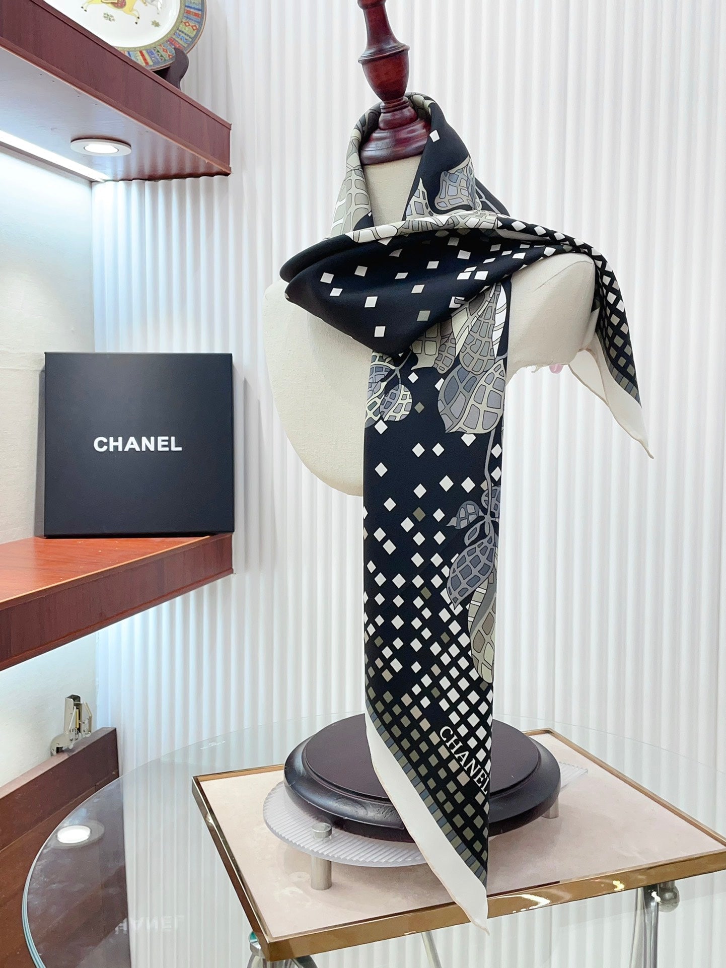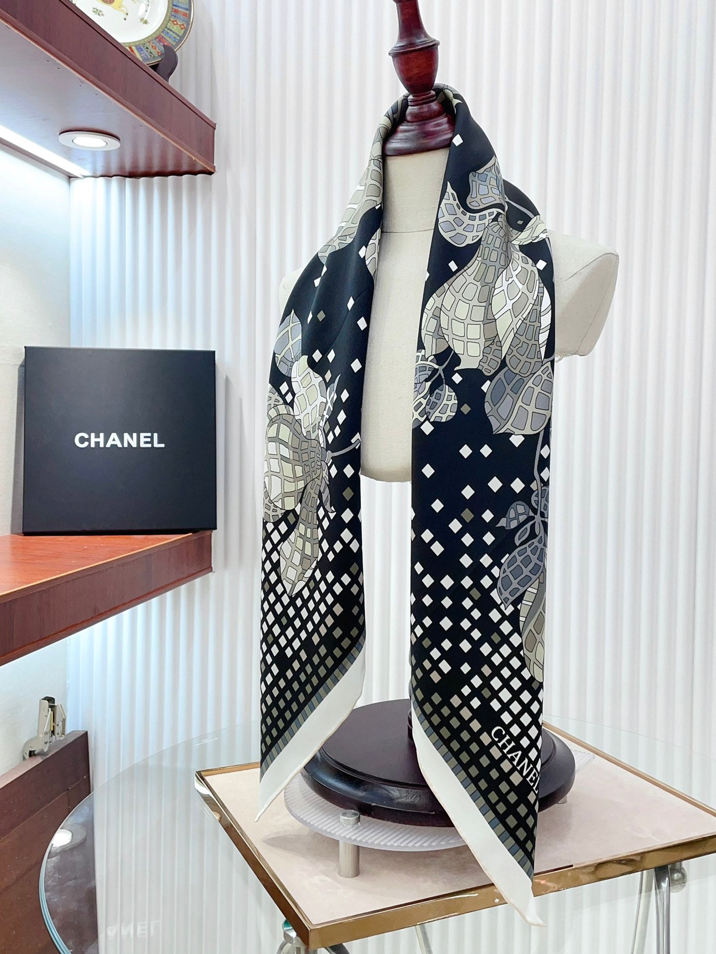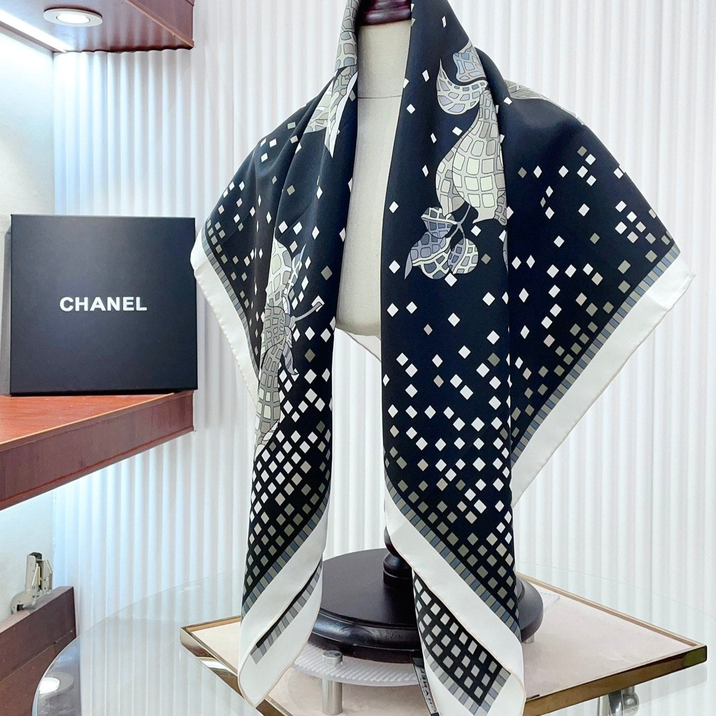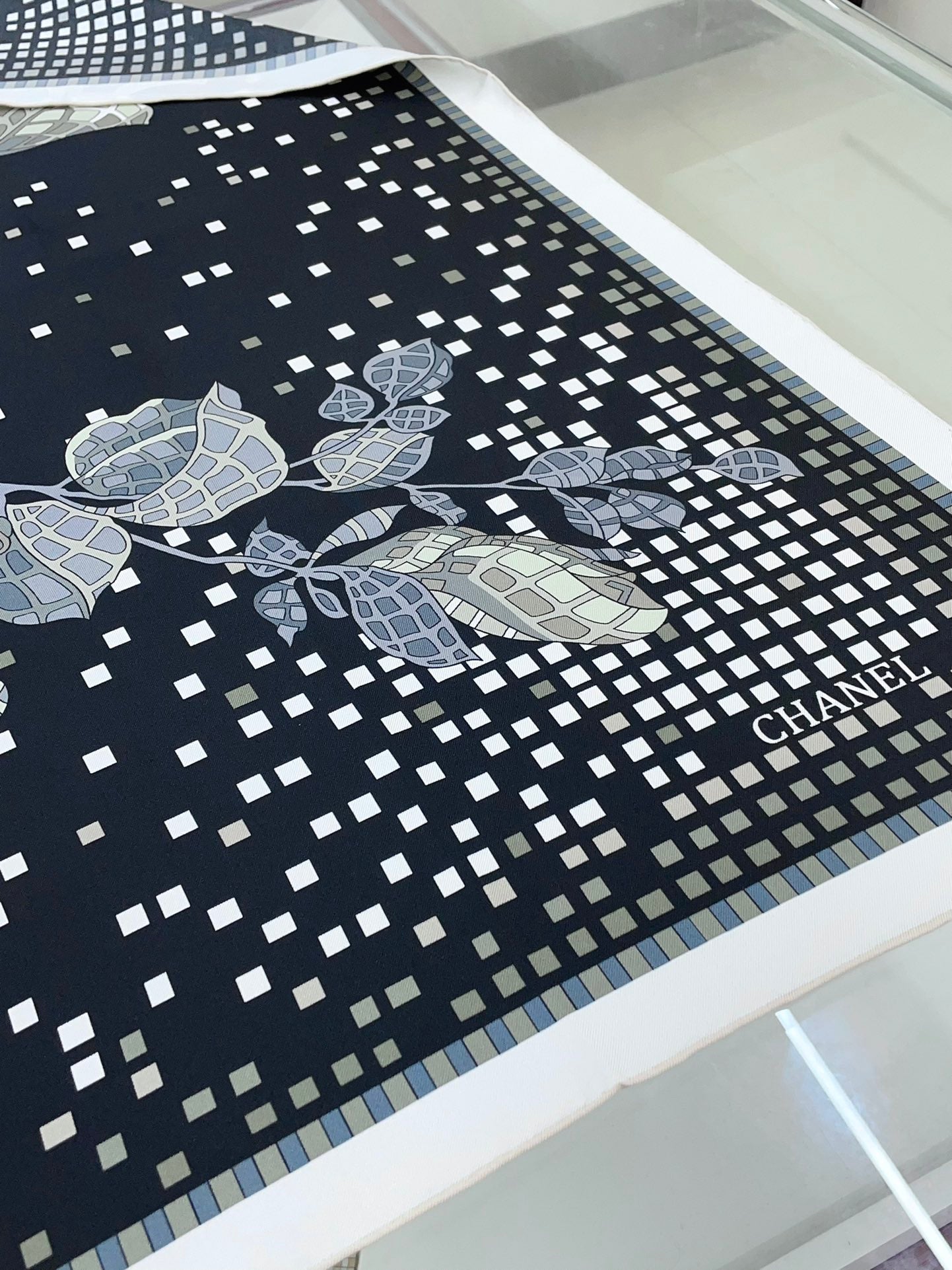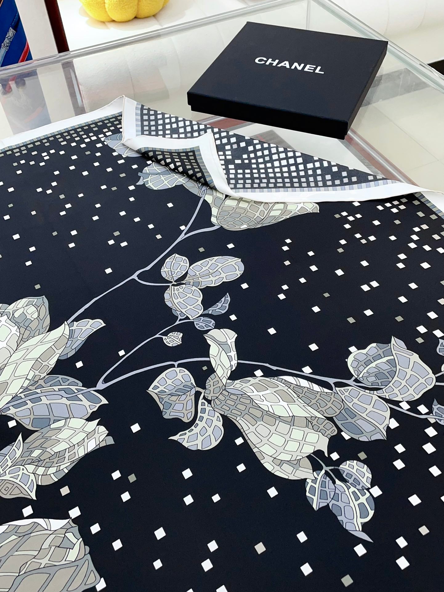 CC Square Scarf 90 CM In Black Camellia Silk Twill 193837