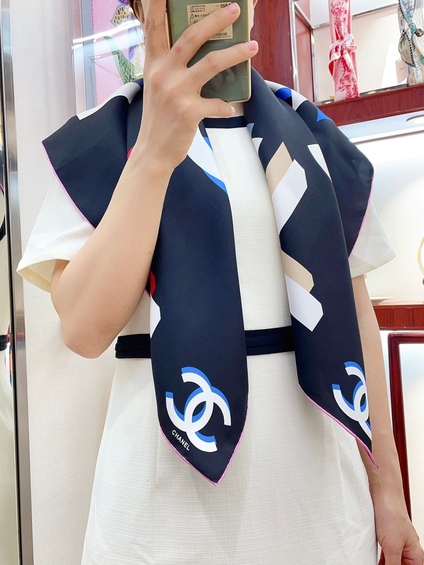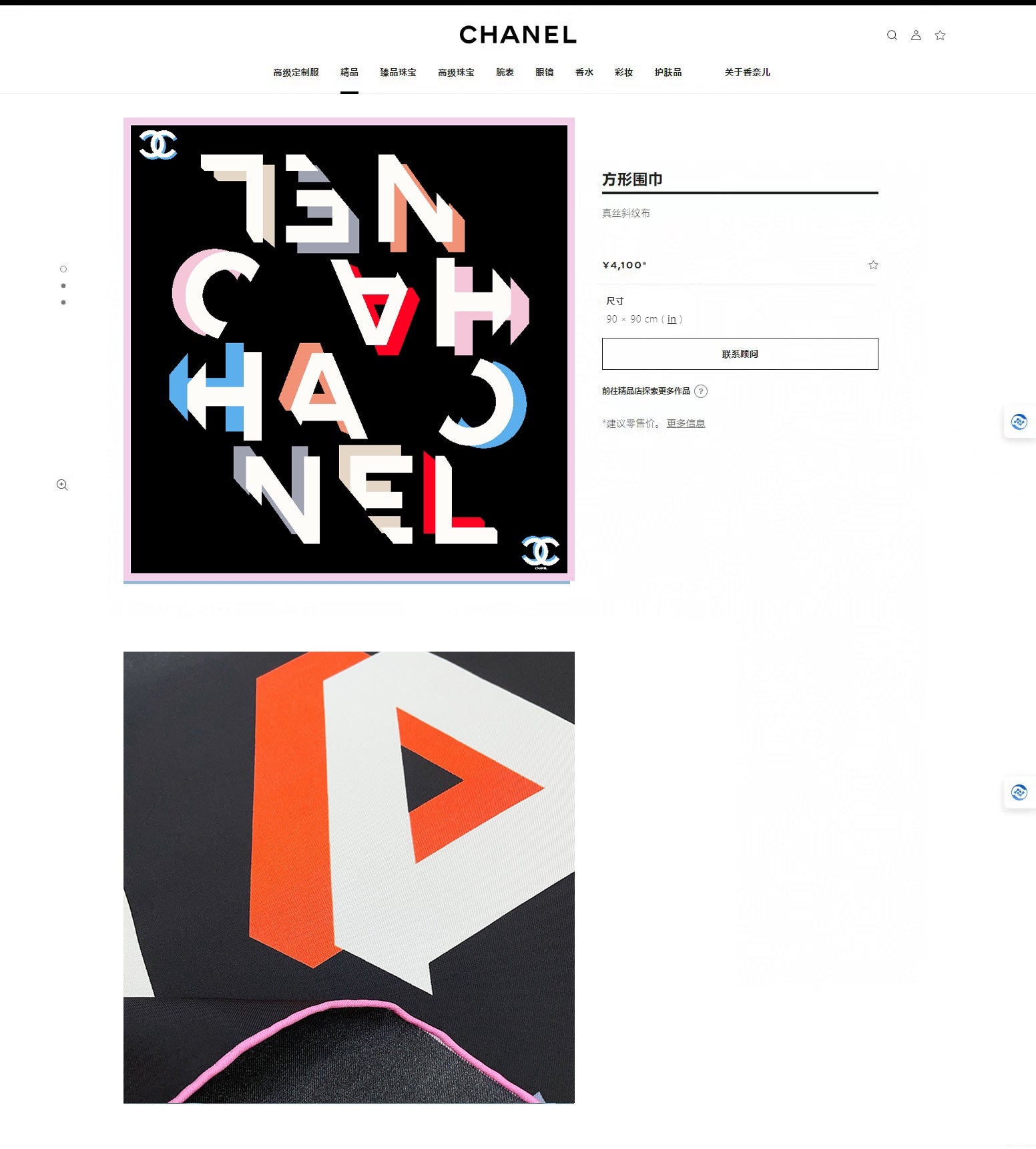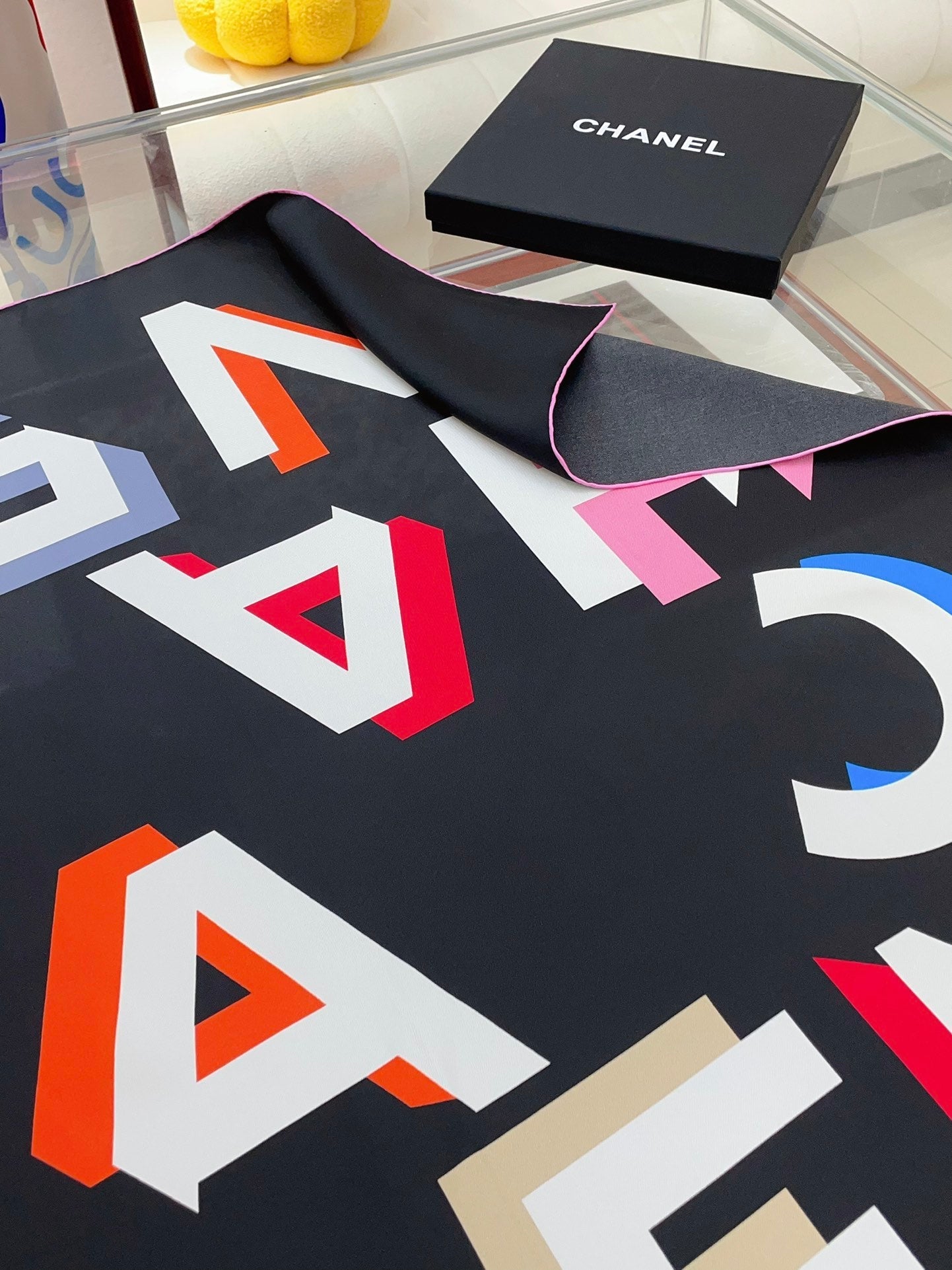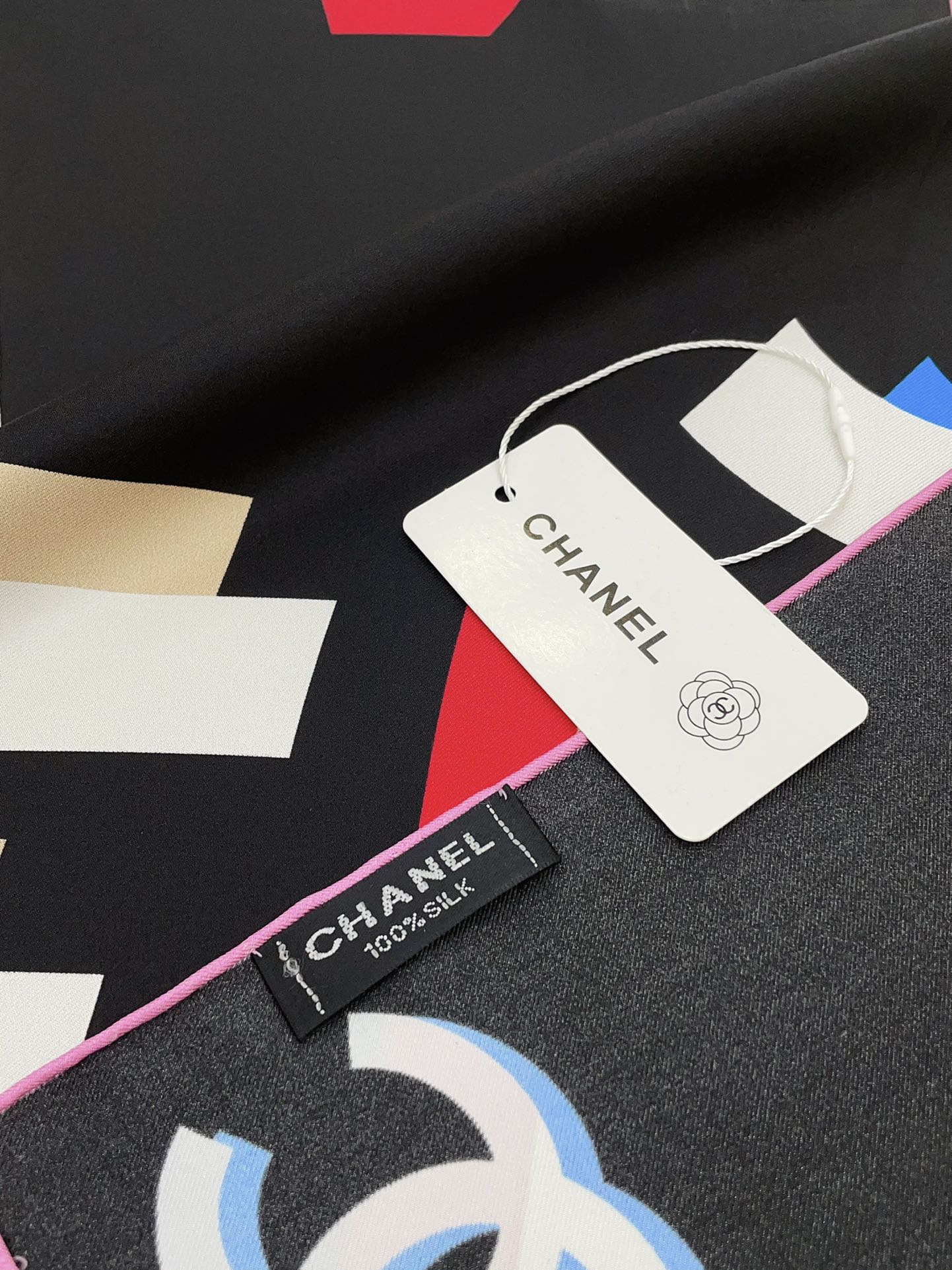 CC Square Scarf 90 CM In Black Colorful Silk Twill 206468