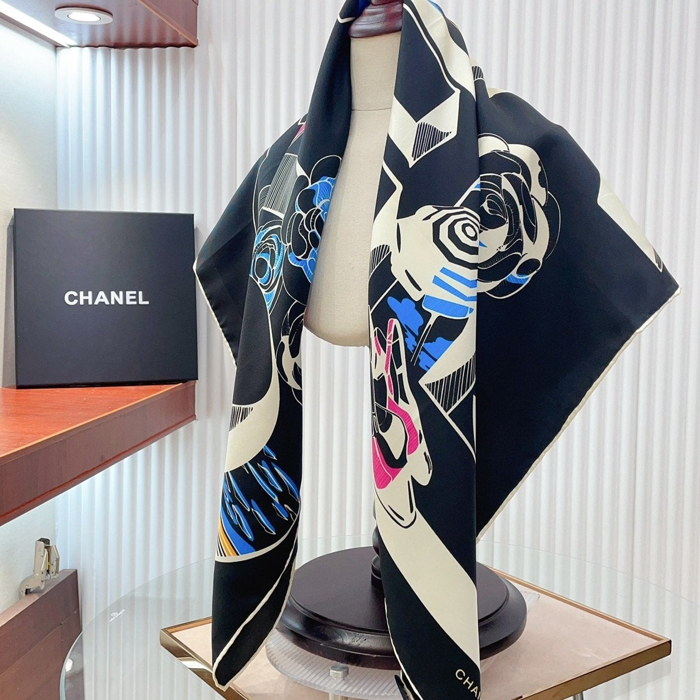 CC Square Scarf 90 CM In Black Colorful Silk Twill 211096