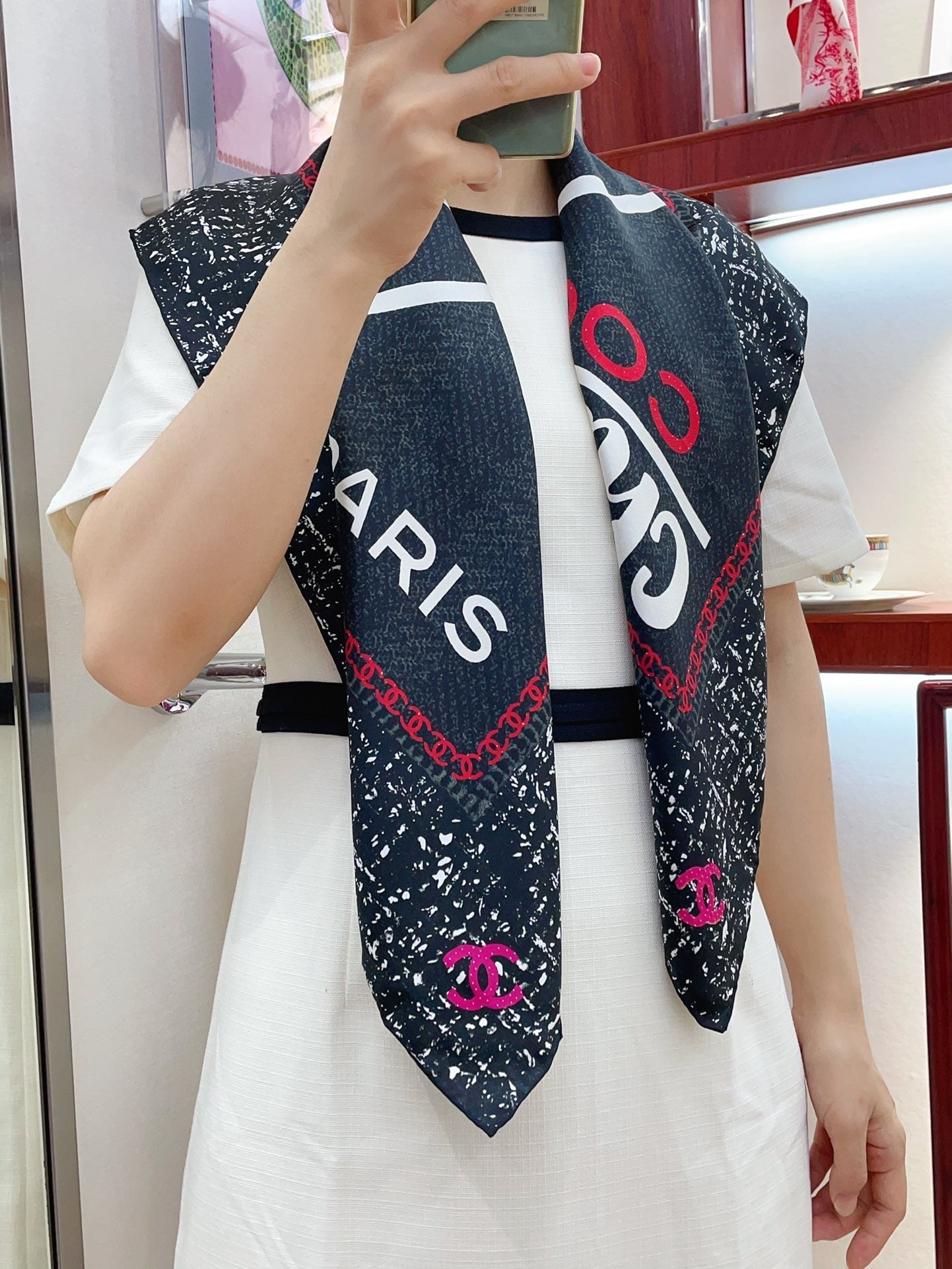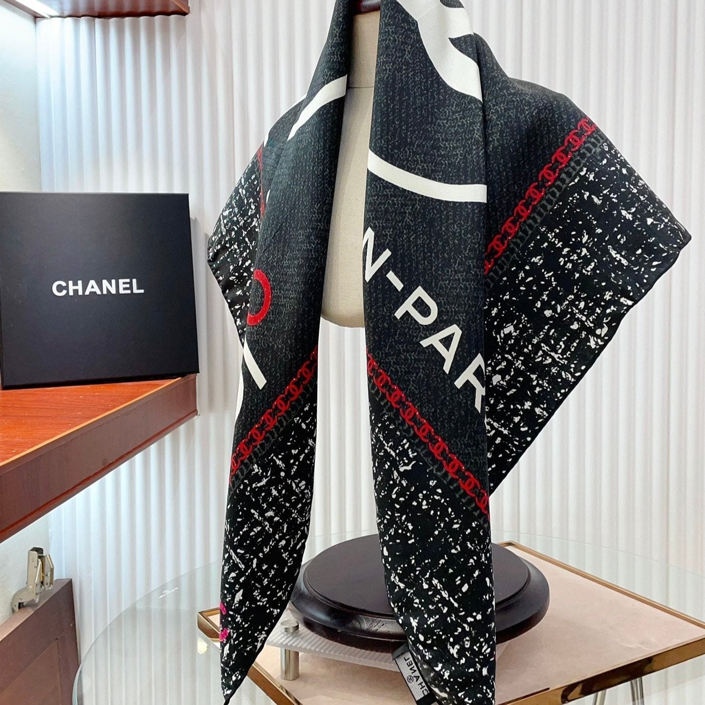 CC Square Scarf 90 CM In Black Mix White Red Cashmere Silk 172078