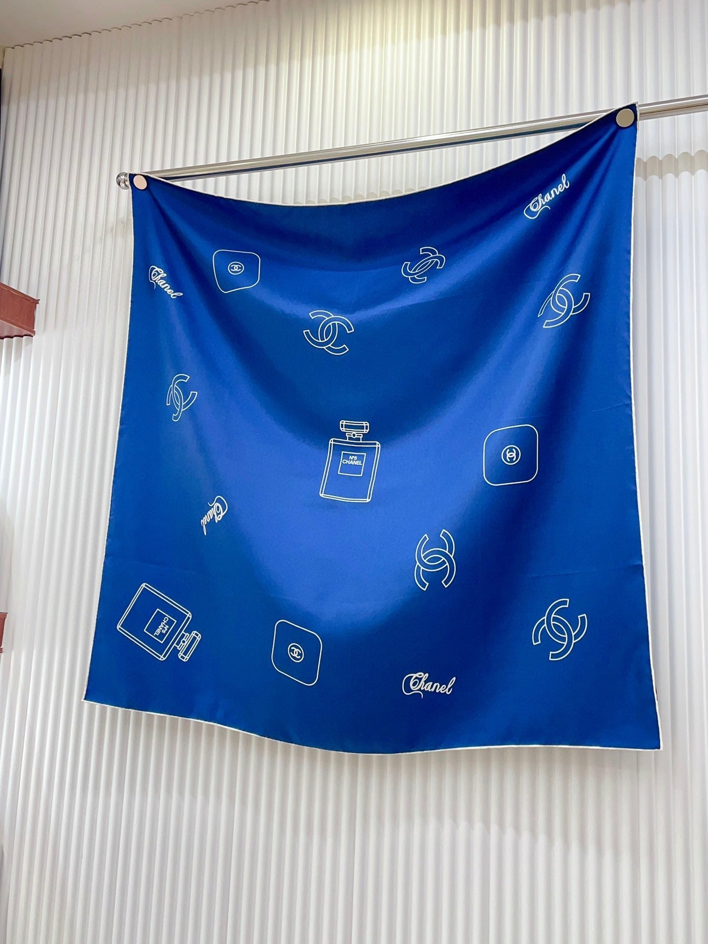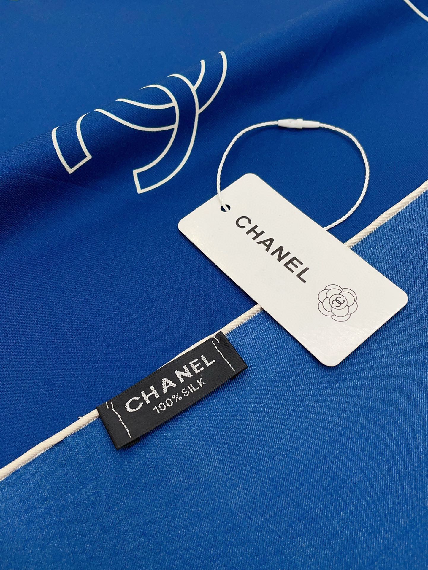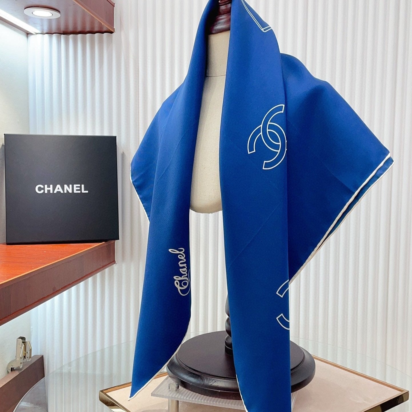 CC Square Scarf 90 CM In Blue Silk Twill 201029