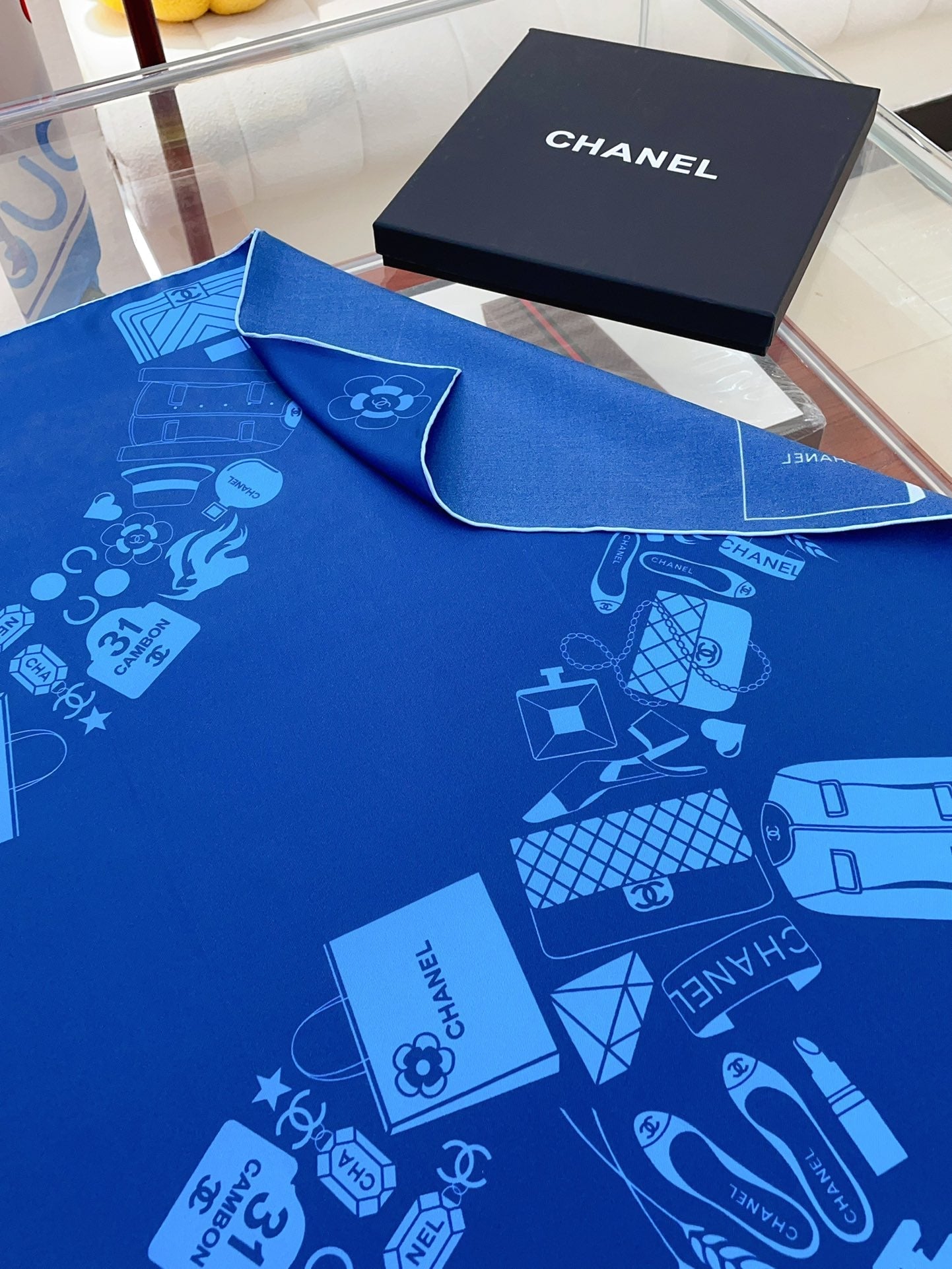 CC Square Scarf 90 CM In Blue Silk Twill 211102
