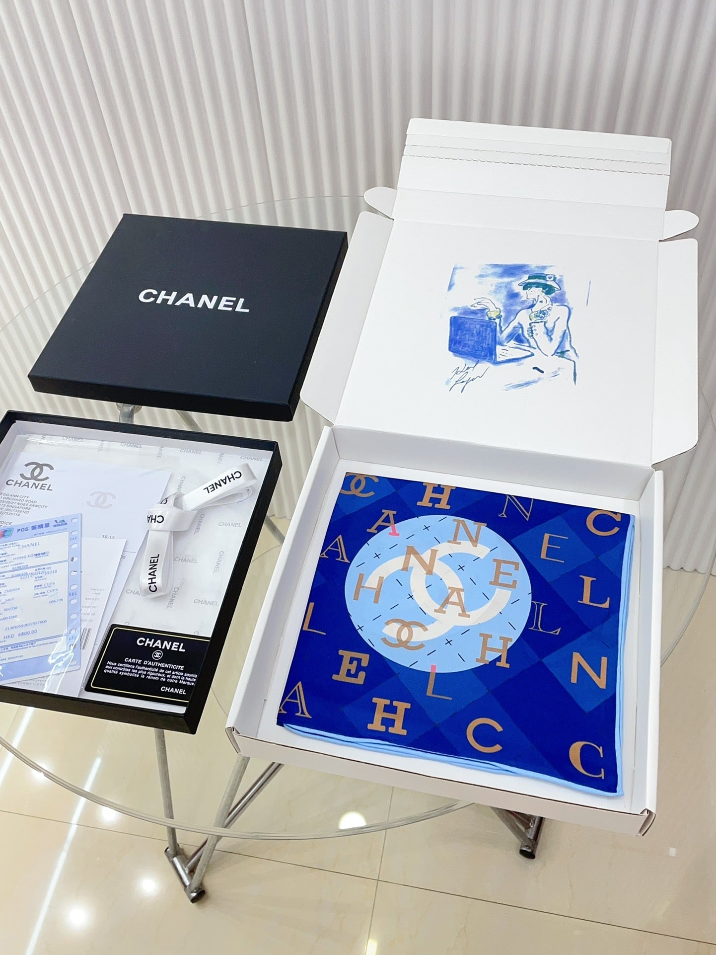 CC Square Scarf 90 CM In Blue Silk Twill 306566