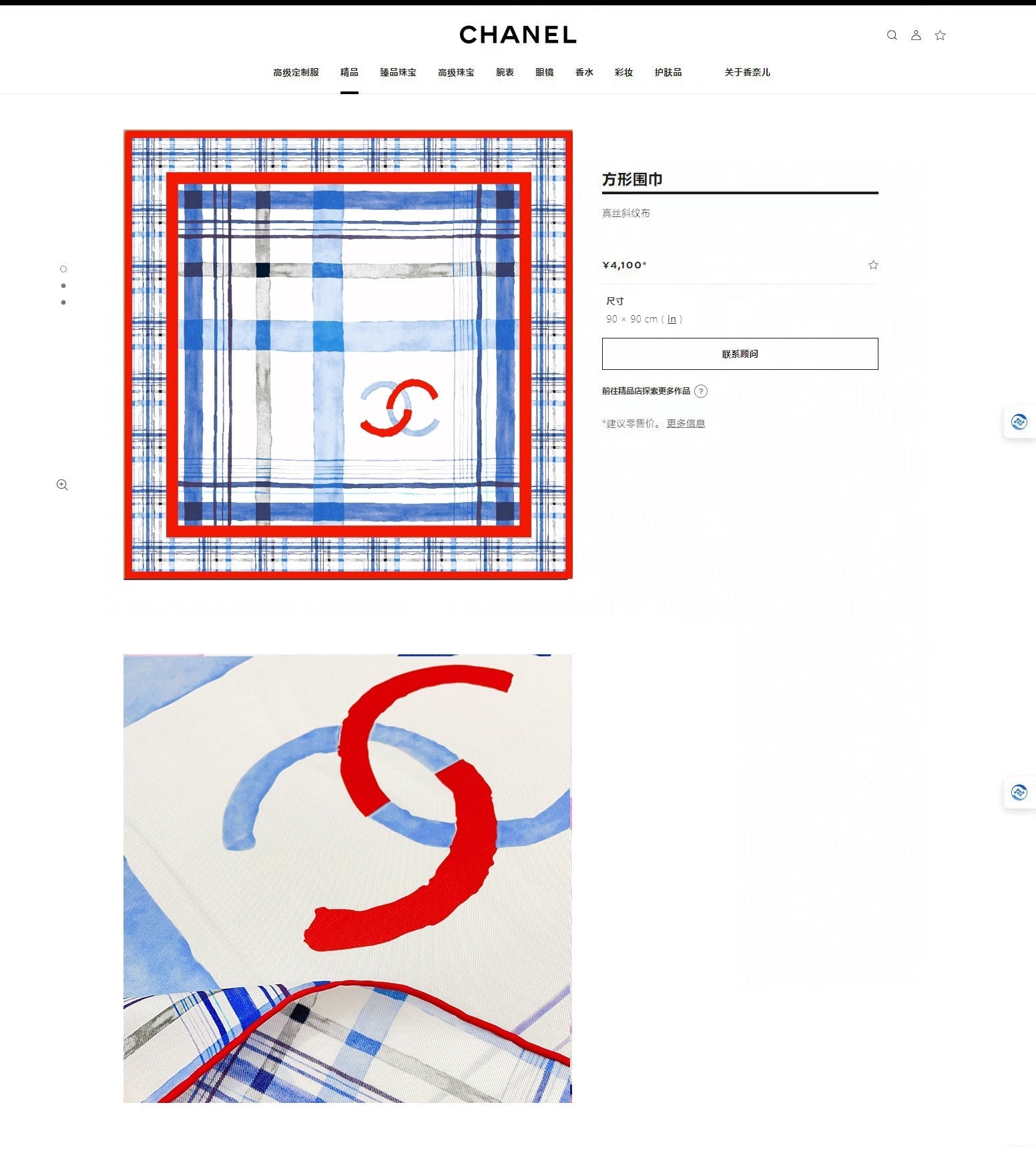 CC Square Scarf 90 CM In Colorful Silk Twill 217209