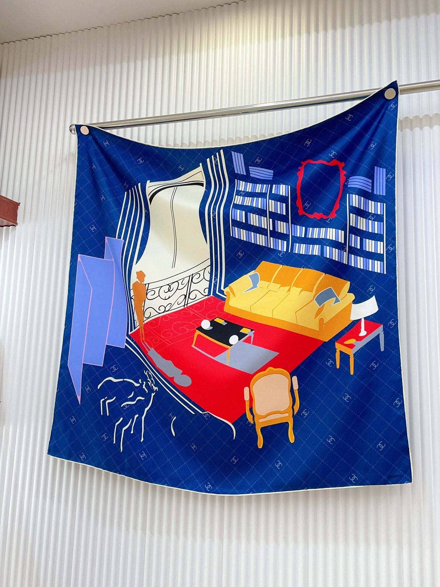 CC Square Scarf 90 CM In Dark Blue Colorful Silk Twill 187427