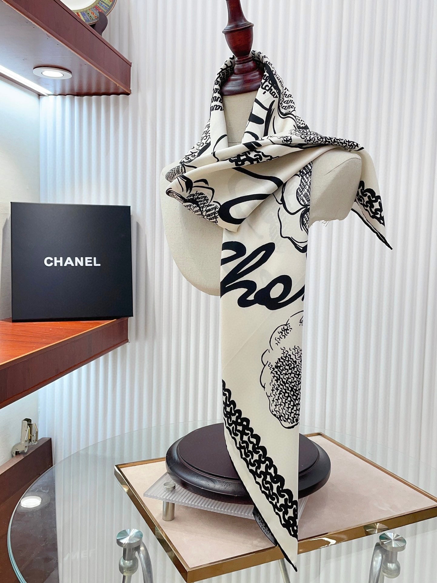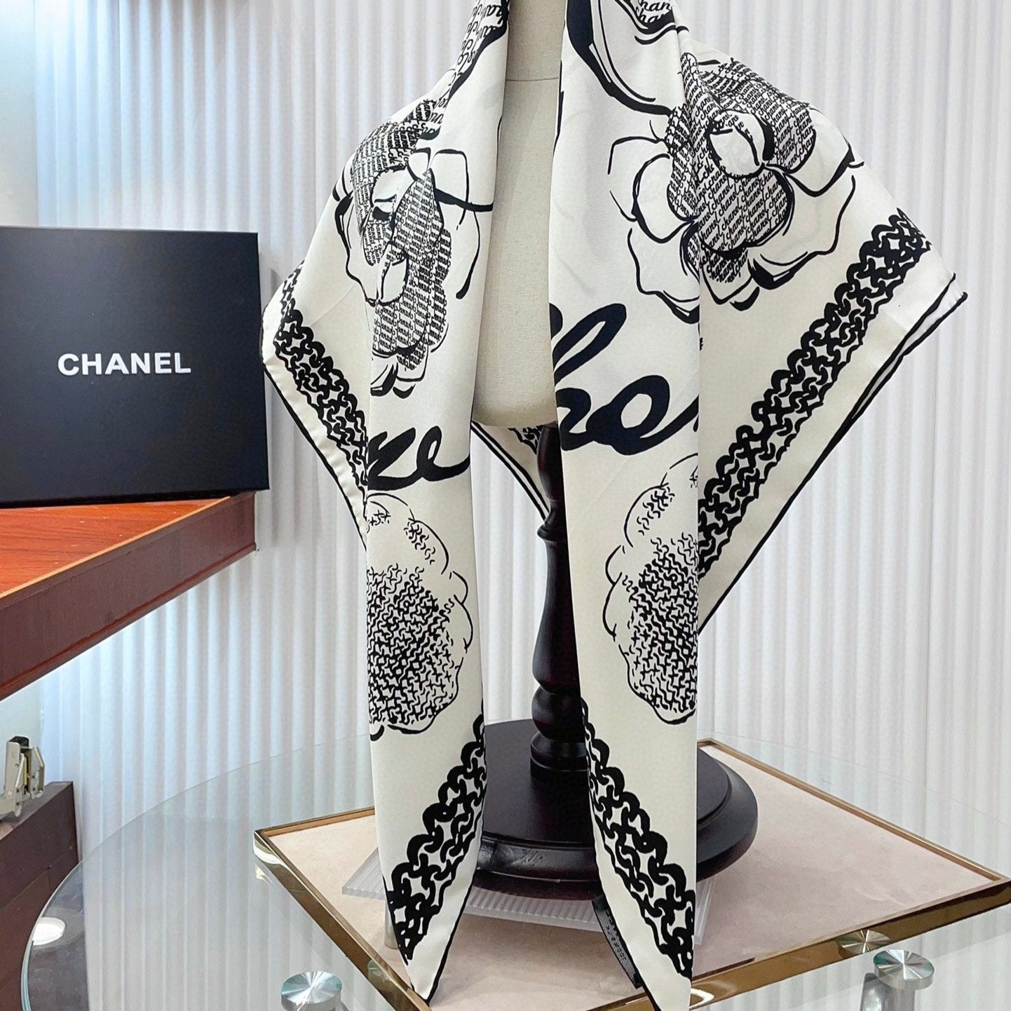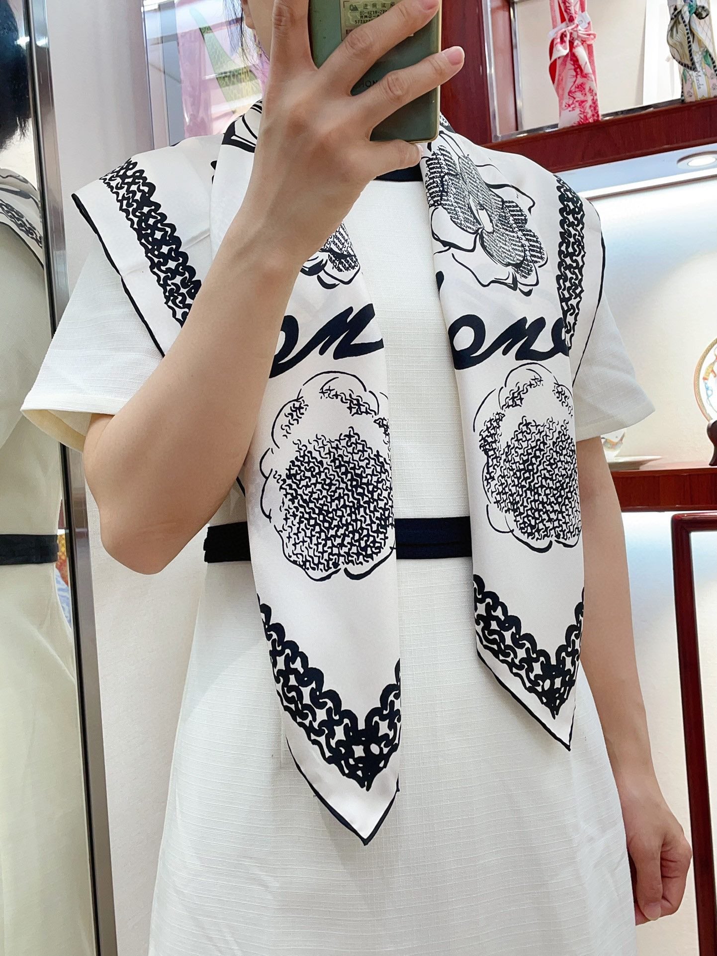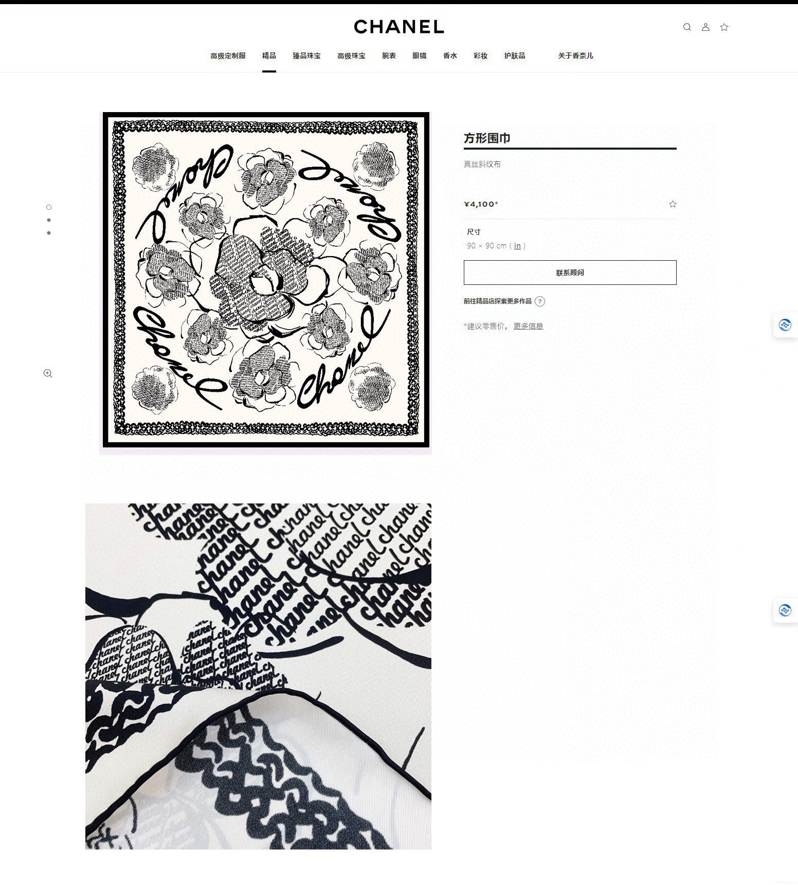 CC Square Scarf 90 CM In White Black Silk Twill 271782