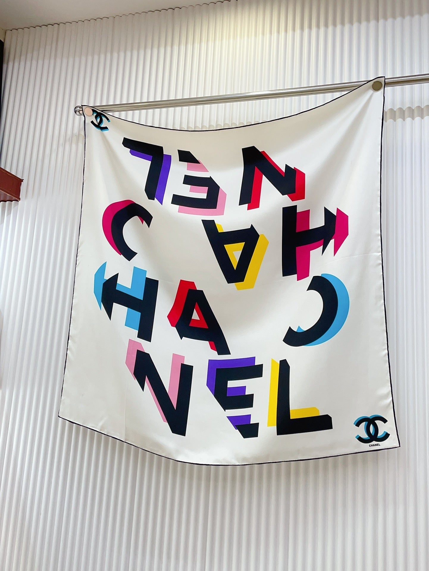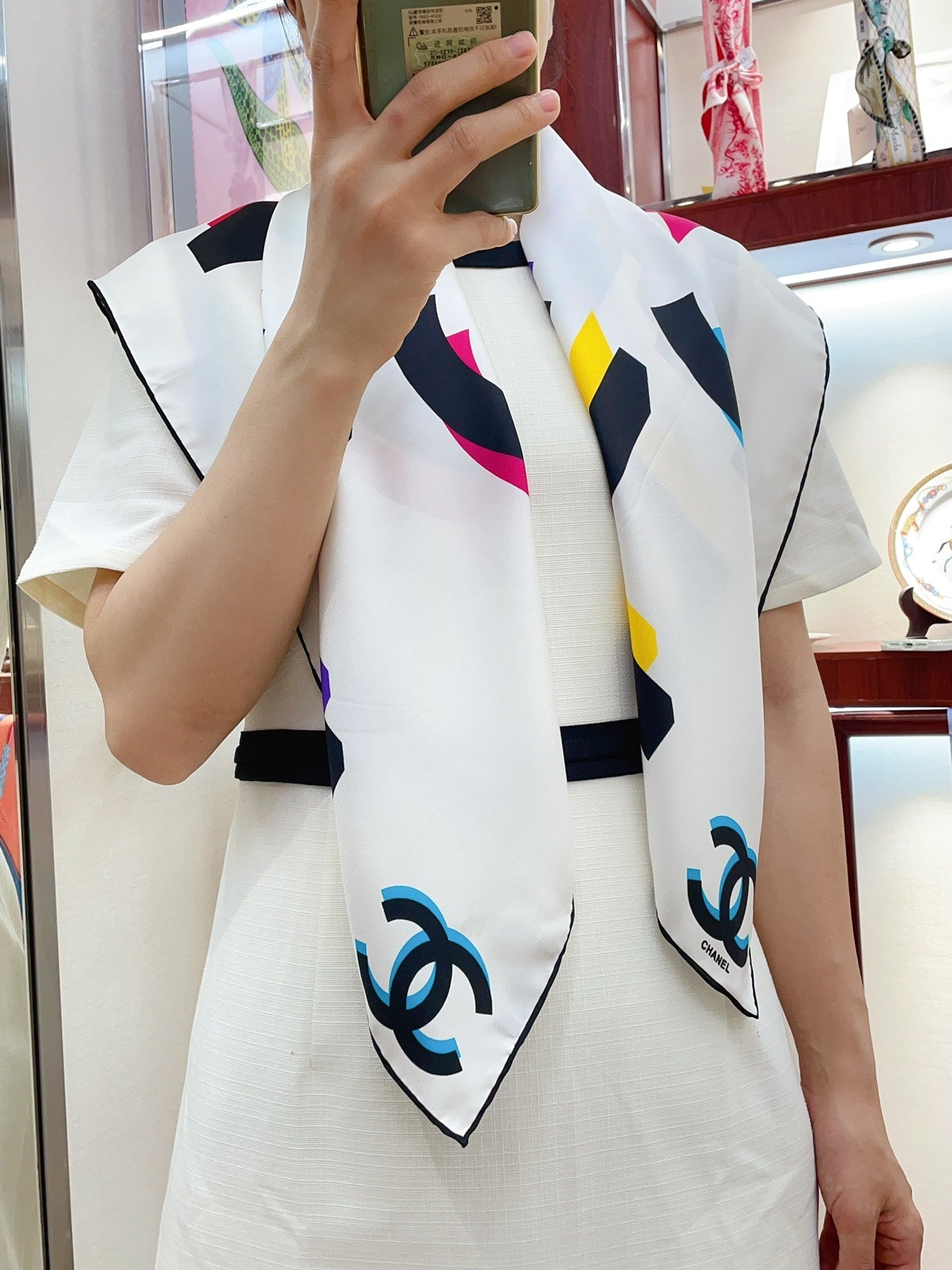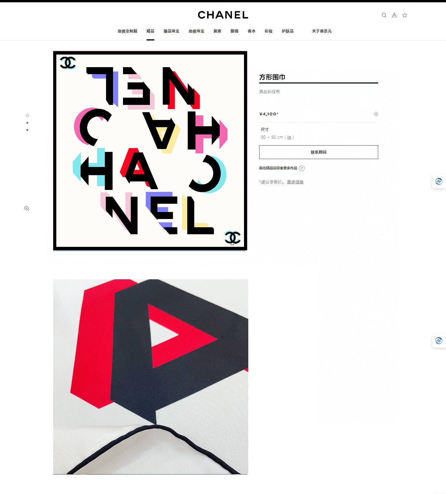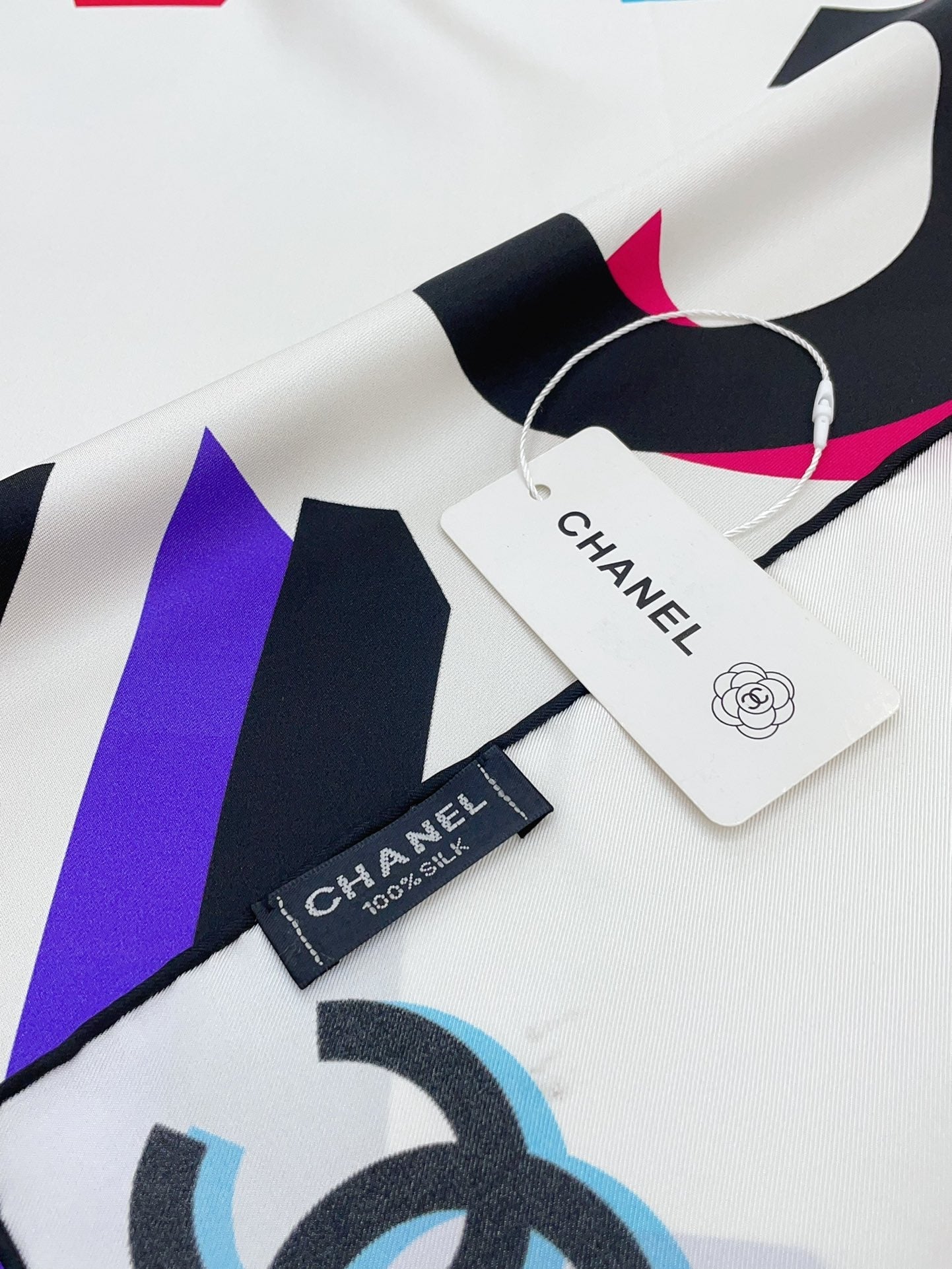 CC Square Scarf 90 CM In White Colorful Silk Twill 206467