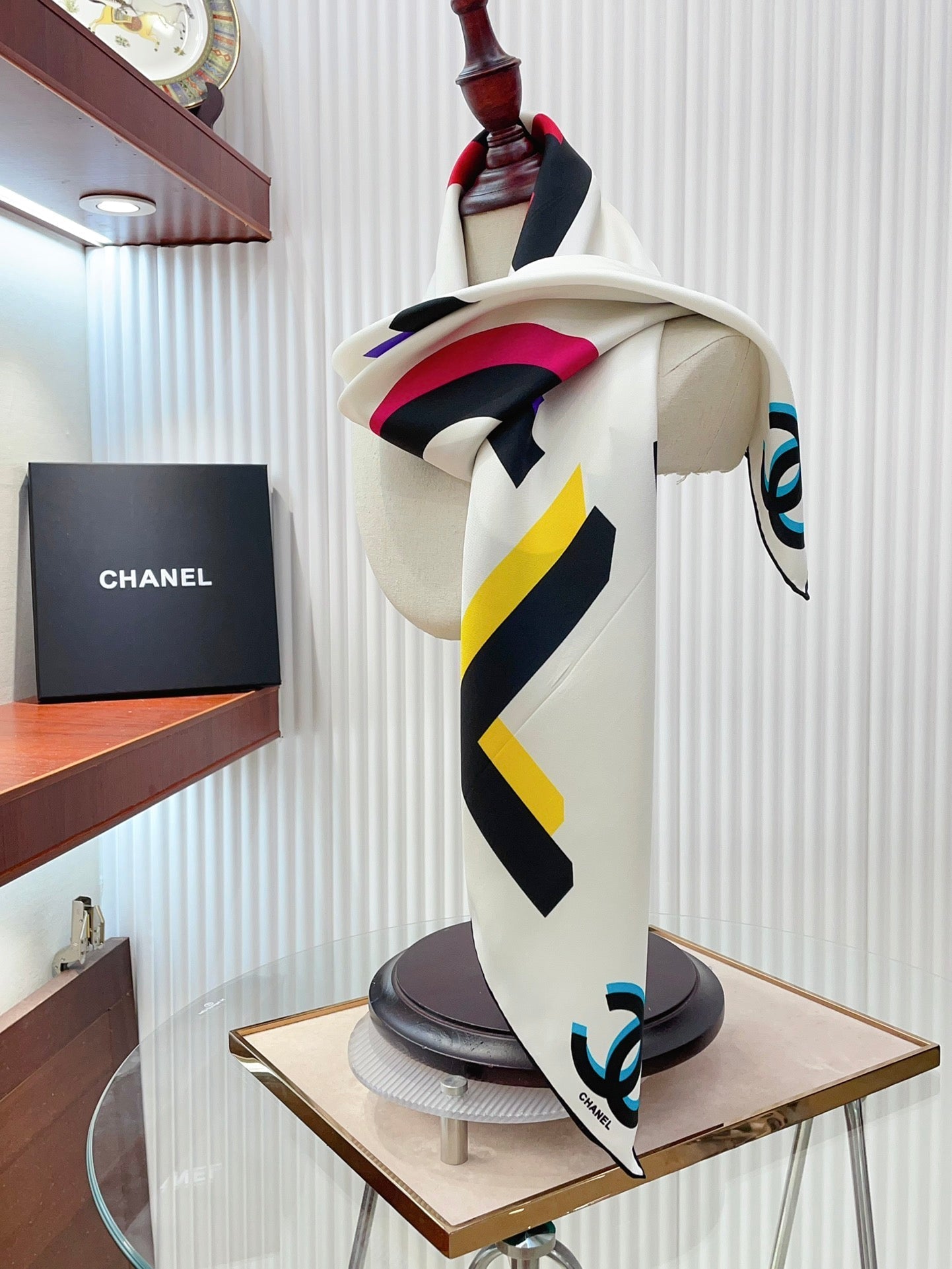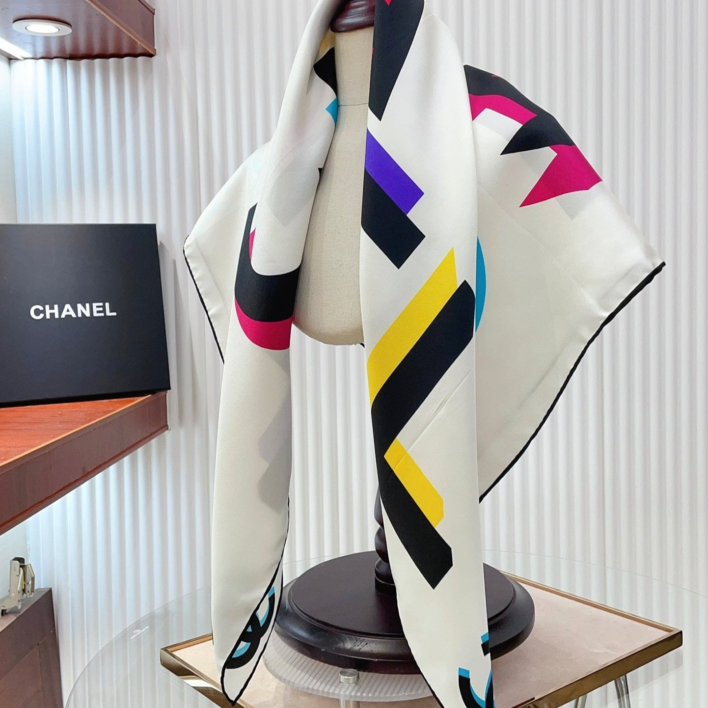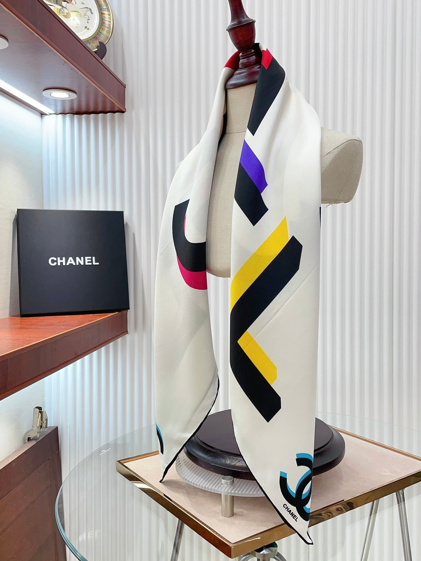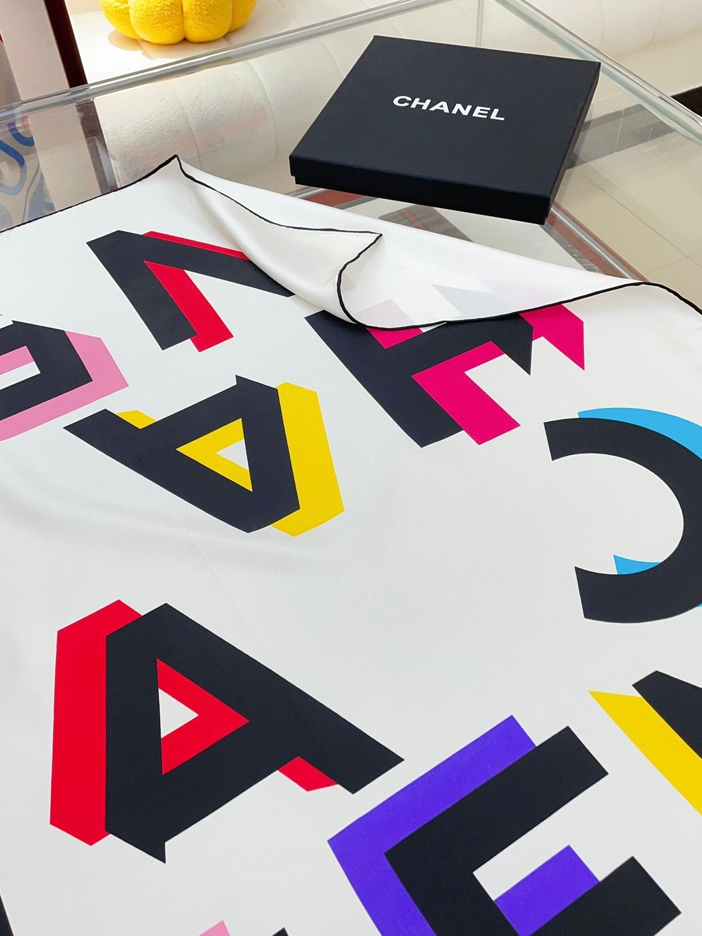 CC Square Scarf 90 CM In White Colorful Silk Twill 206467