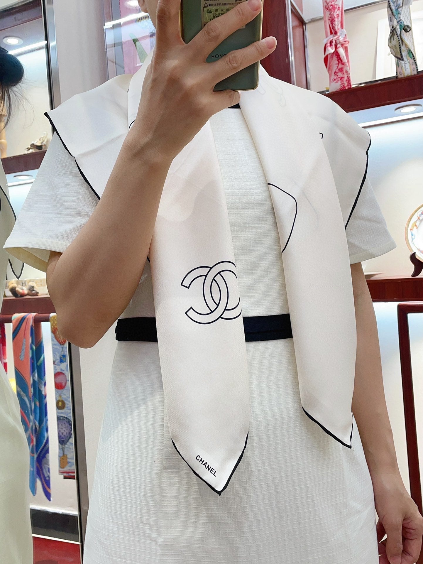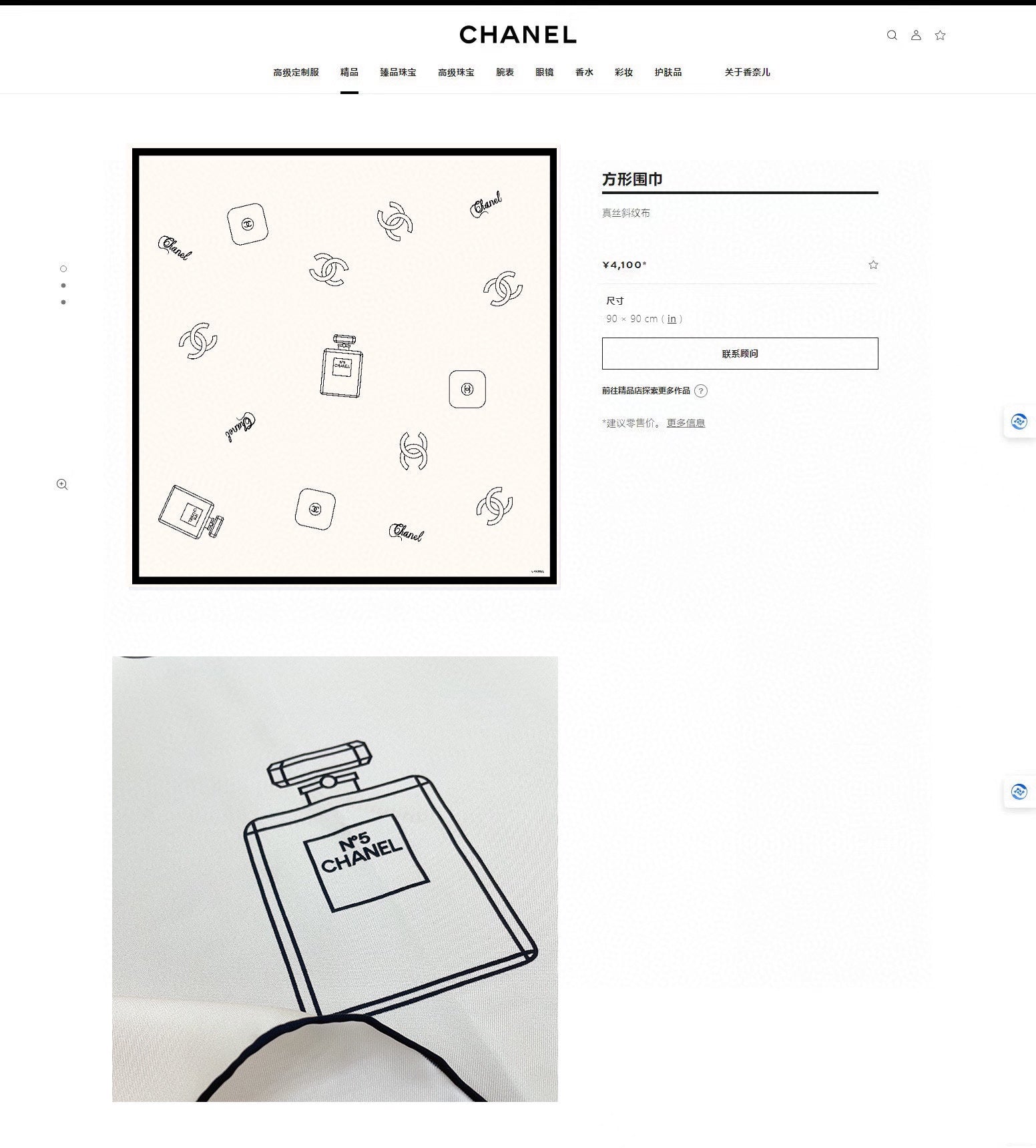 CC Square Scarf 90 CM In White Silk Twill 335845