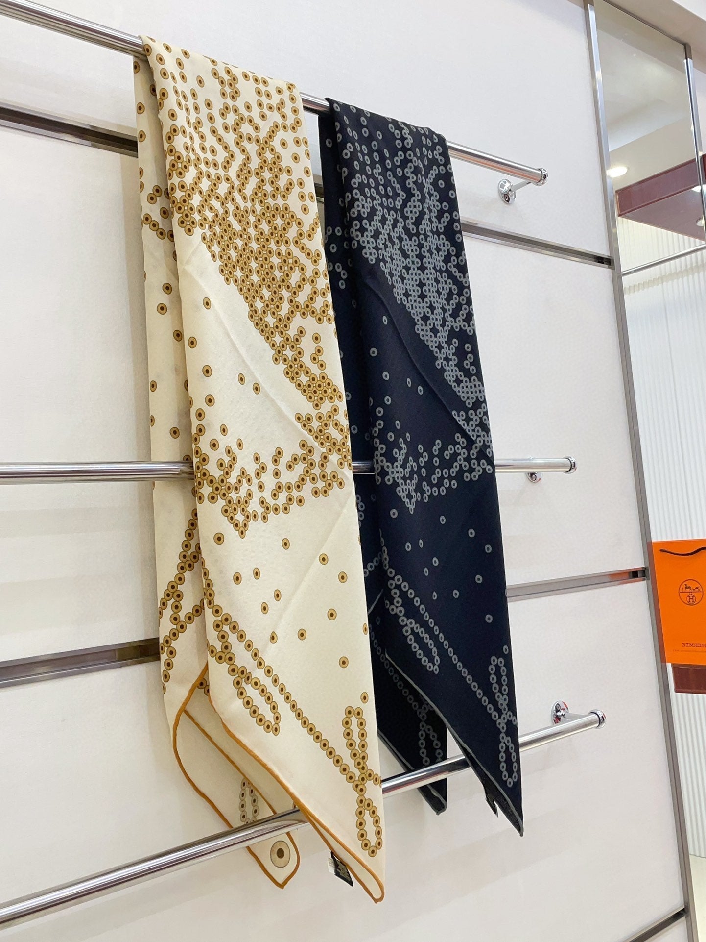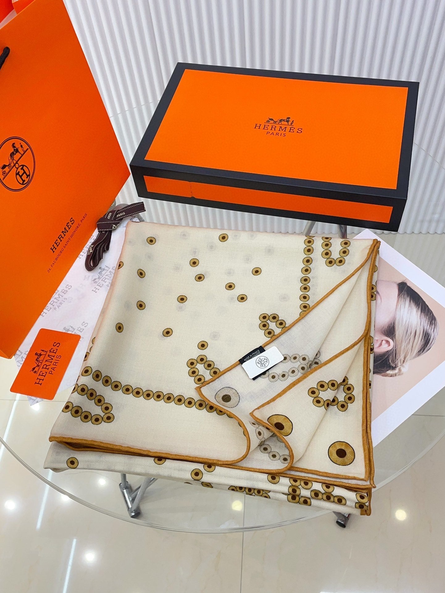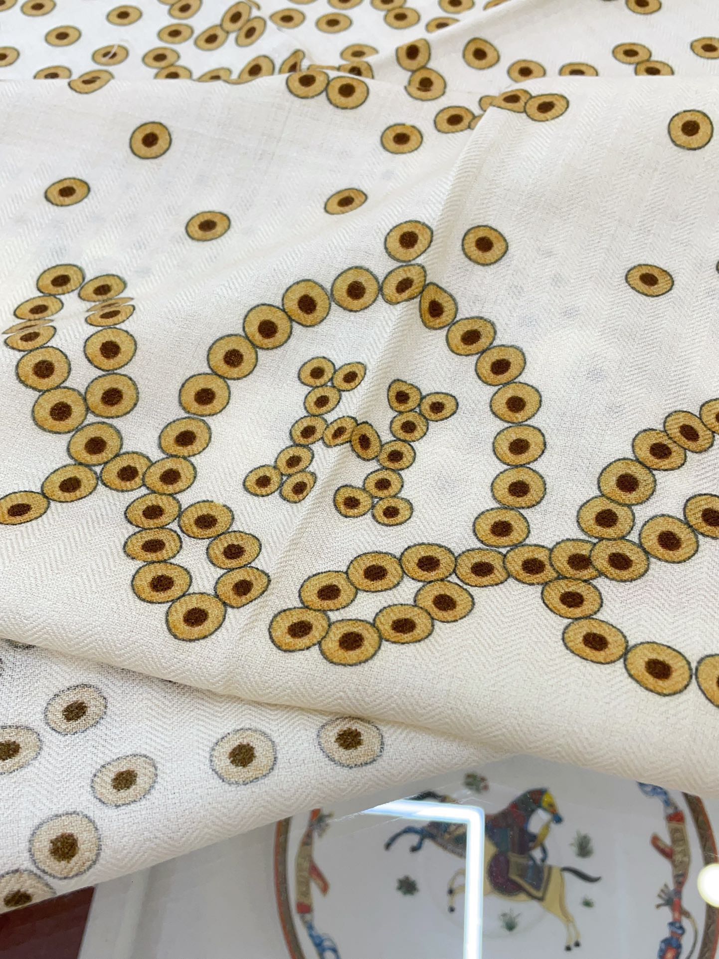 Square Scarf 140 CM Ivory White Pattern Cashmere And Silk