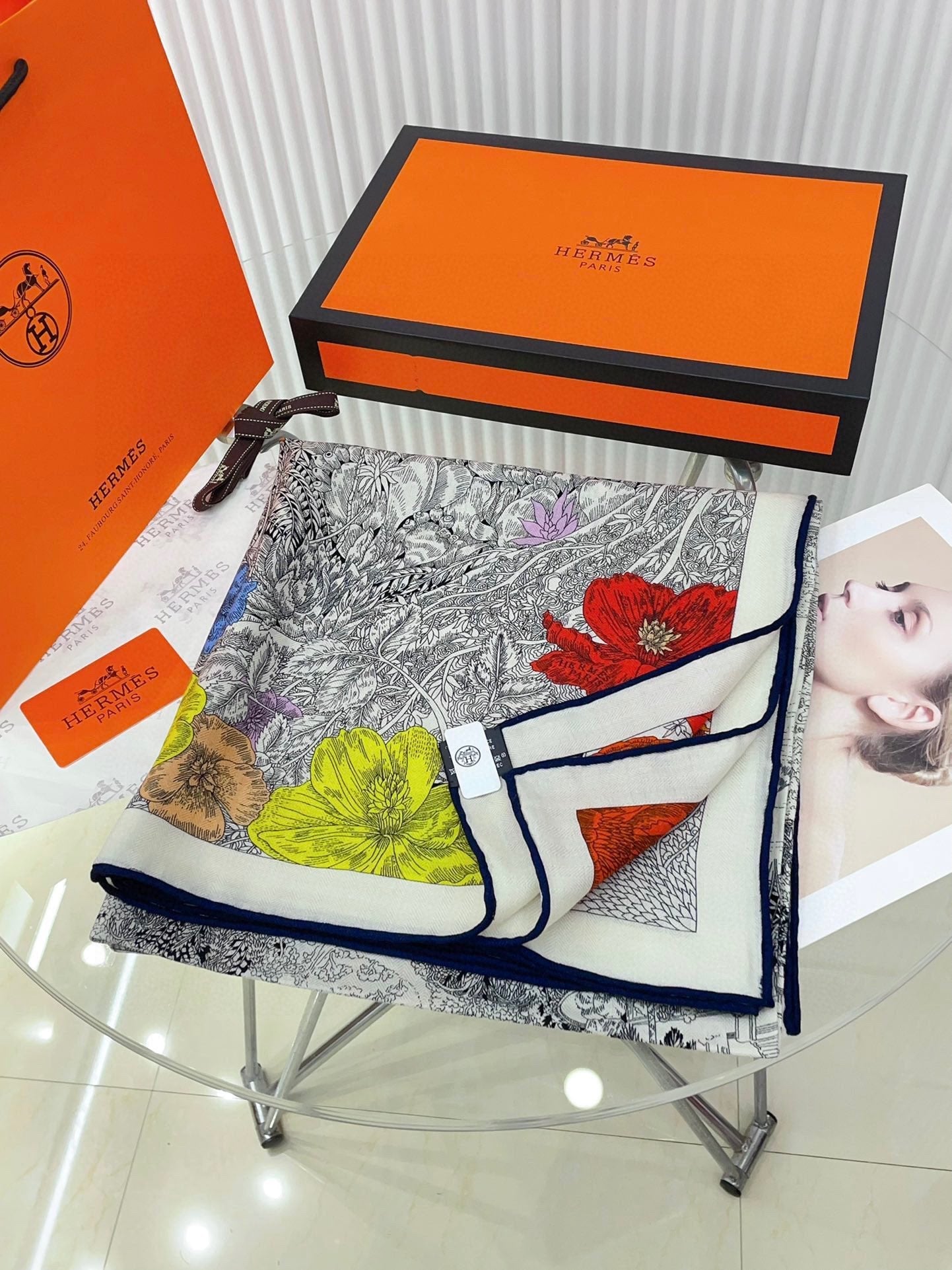 Square Scarf 140CM In Grey White Colorful Cashmere And Silk