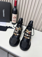 CC Combat Boots 50mm Black Calfskin And Lycra Fabric 944548