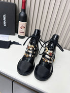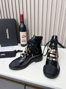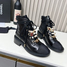 CC Combat Boots 50mm Black Glossy Calfskin And Lycra Fabric 944549