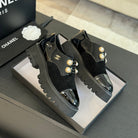 CC OXFORD SHOES IN BLACK SUEDE AND CALFSKIN WITH PEARL CHAIN