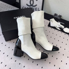 CC Short Boots 55mm White Black Wool Mix Glossy Cowhide 938067