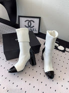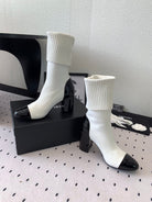 CC Short Boots 85mm White Black Wool Mix Glossy Cowhide 938069