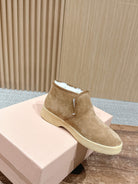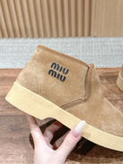 Miumiu 25 Slip-on Boot Light Brown Mix White Suede Wool 553706