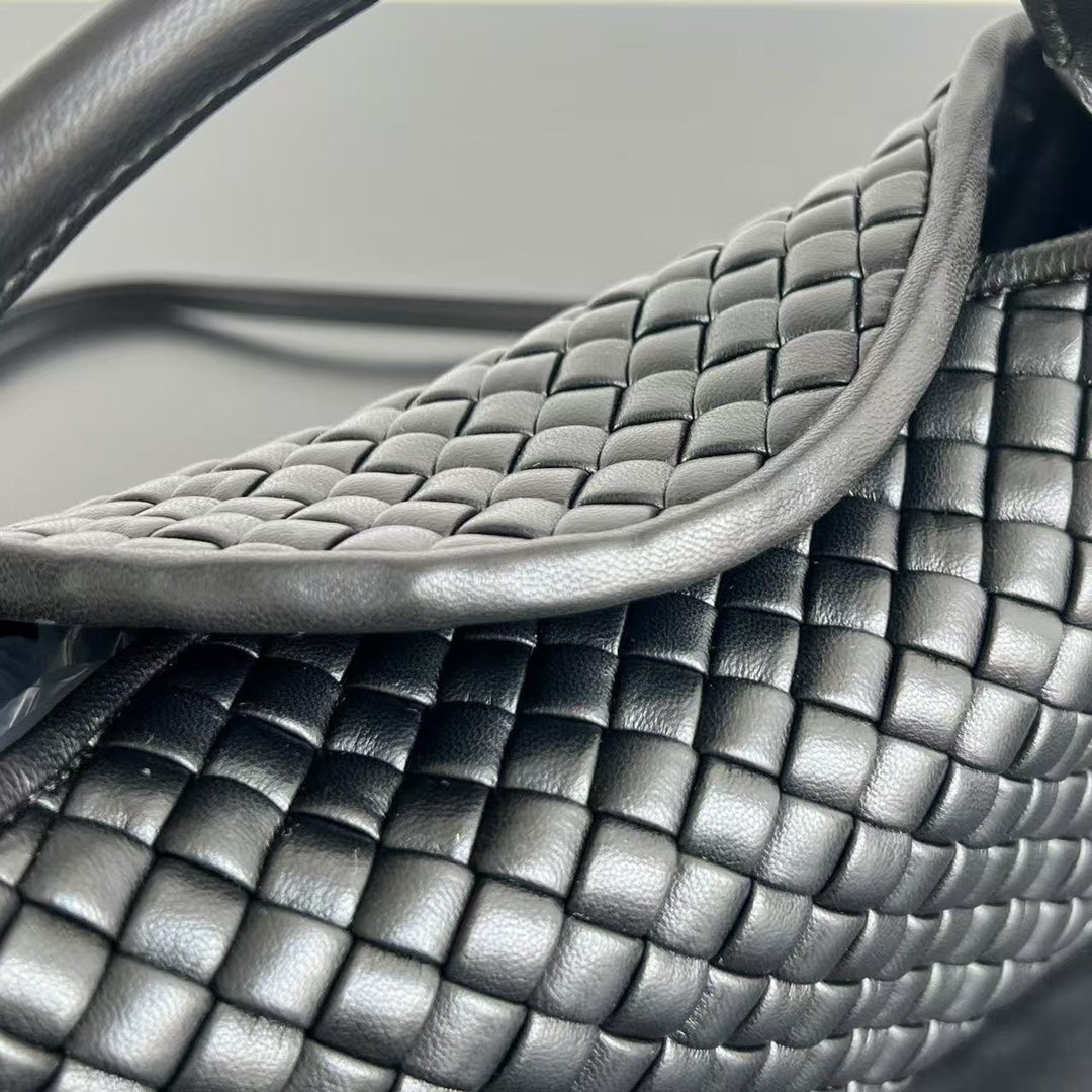 BV Small Cobble Top Handle 23cm Black Lambskin