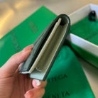 INTRECCIATO BUSINESS 11 EMERALD GREEN CALFSKIN CARD CASE
