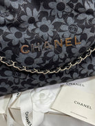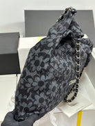 CC 22 Bag Gray Black Camellia Pattern Demin Silver Hardware 243625