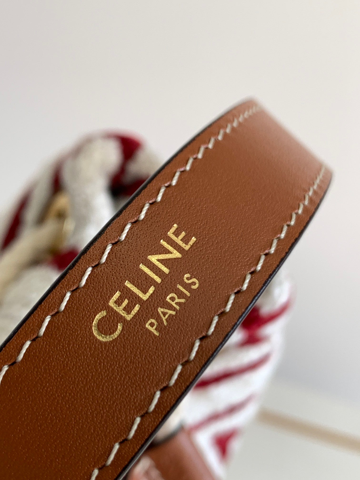 Material: fabric lining, hand carry, drawstring closure, leather handle length 13 cm