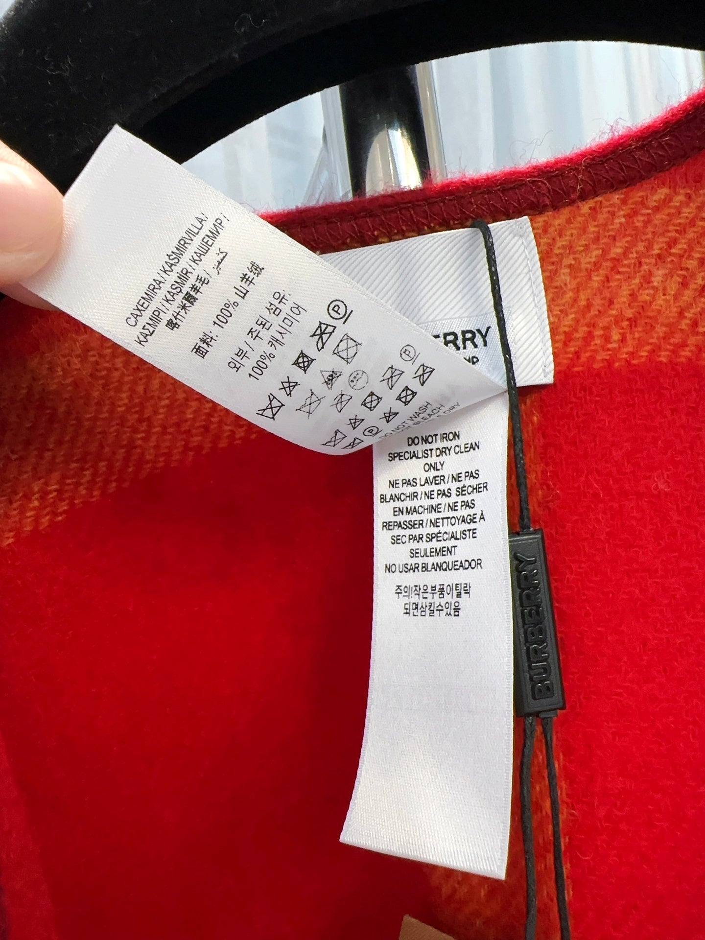REVERSIBLE CHECK CASHMERE CAPE CHERRY RED AND BLACK 410134