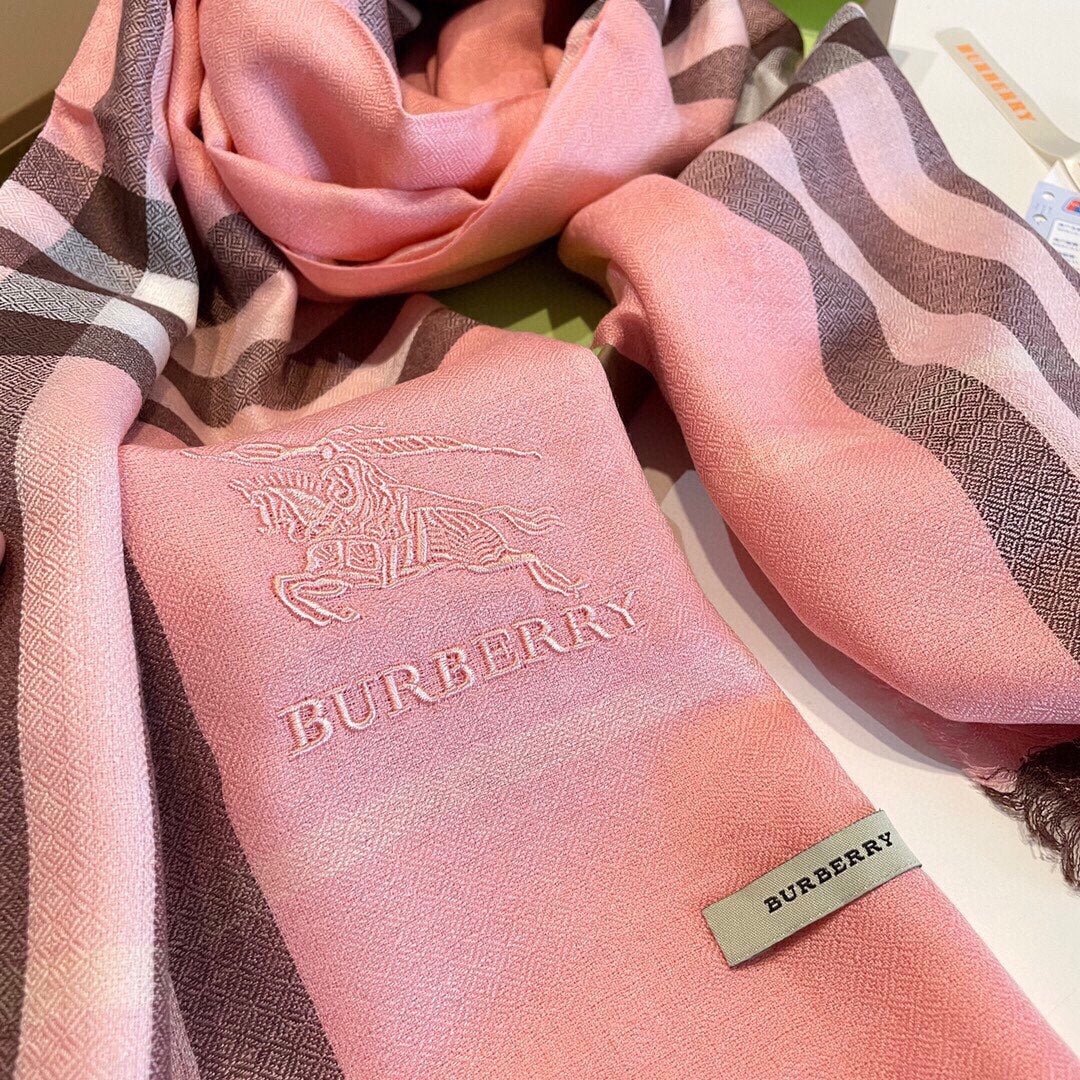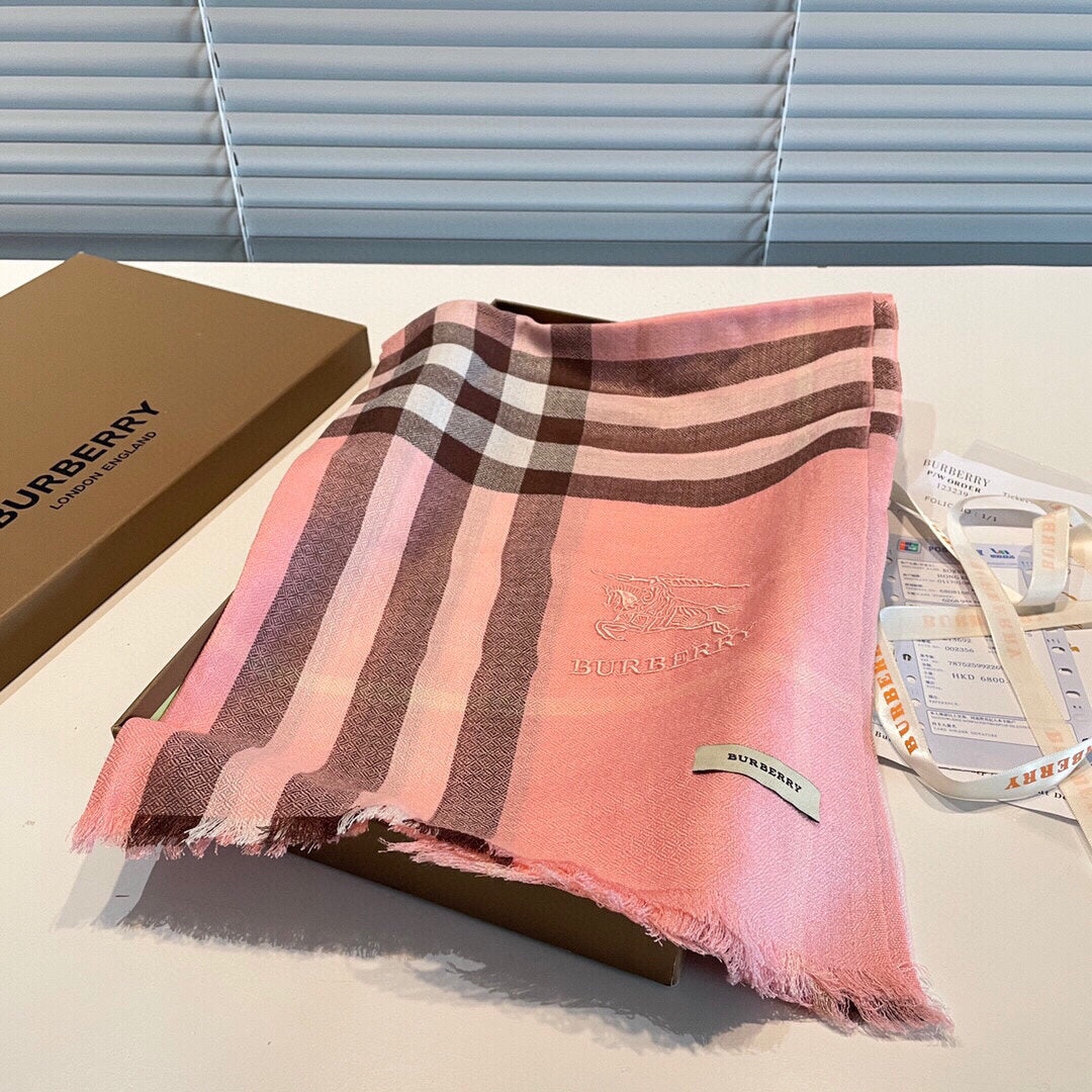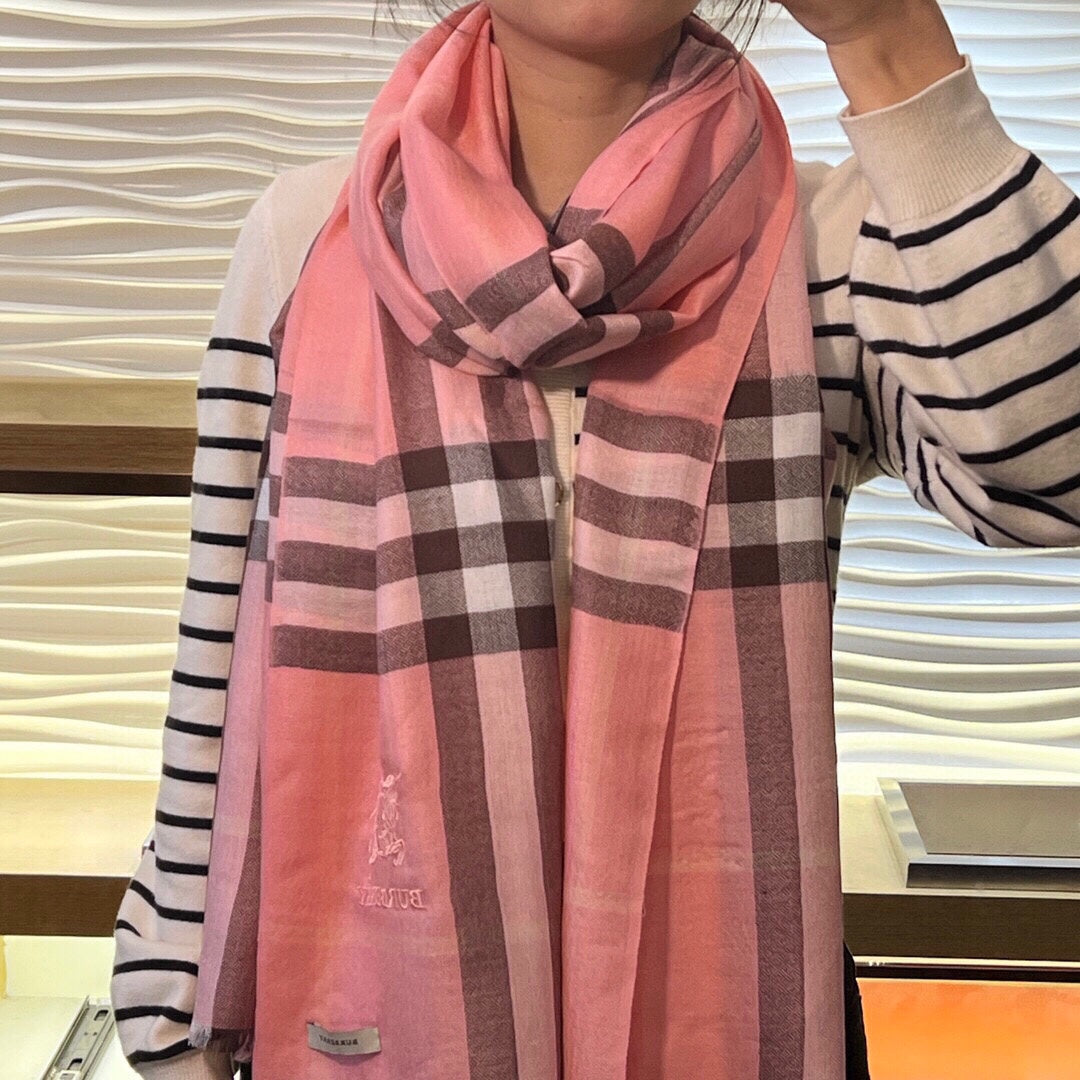 WIDE CHECK CASHMERE SCARF 200 CM IN ROSE PINK CASHMERE 407325