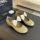 BALLET FLAT EICRU BEIGE LAMBSKIN WITH WHITE BOW