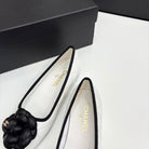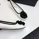 CC 25 Ballet Flat Flower White Quilted Calfskin