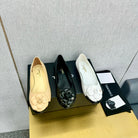 CC 25P Ballet Flat Flower Beige Calfskin Black Patent Calfskin