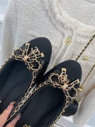 CC Ballet Flats 25mm Black Bow Tie Chain Lambskin