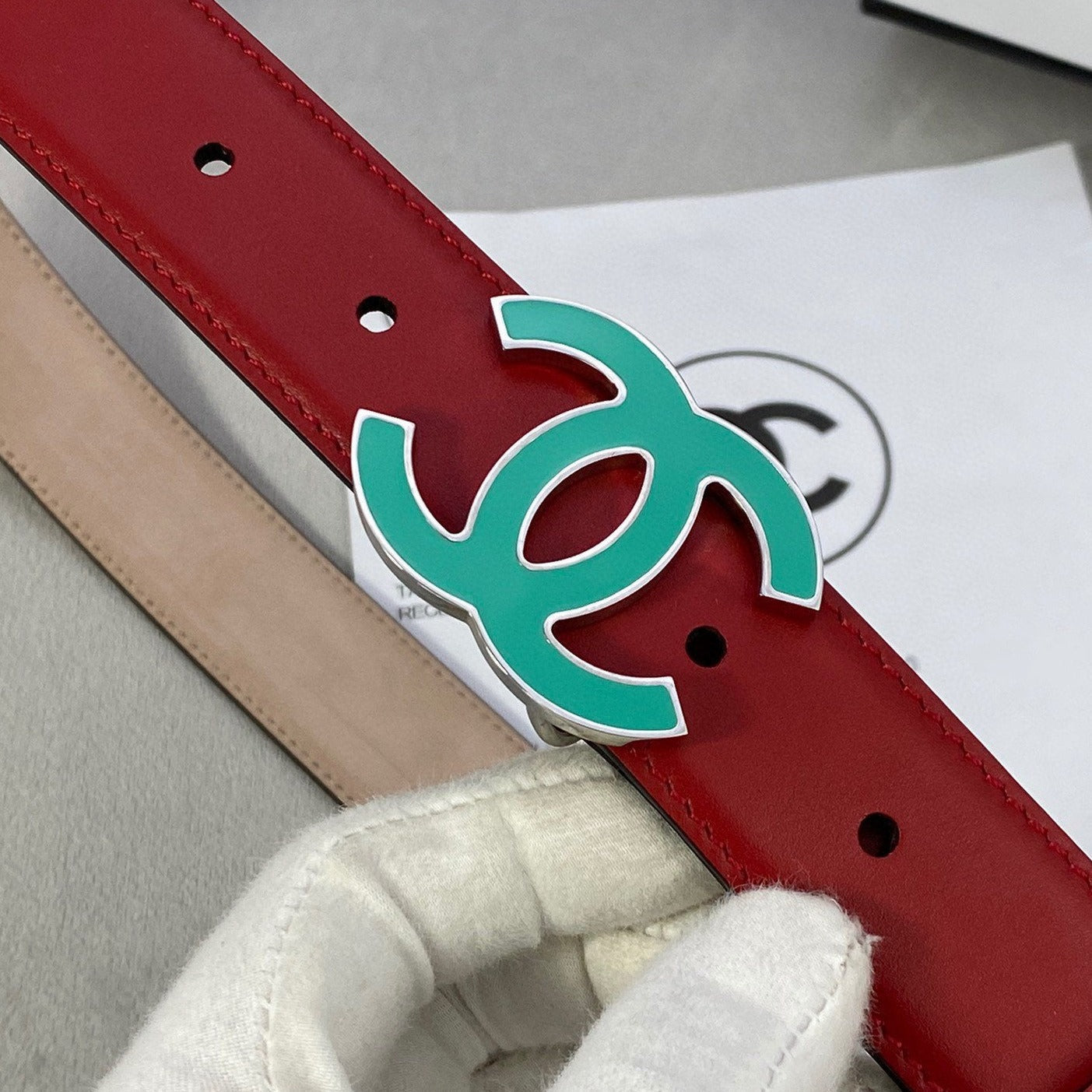 CC BELT 3.0CM BUCKLE BLUE LEATHER RED