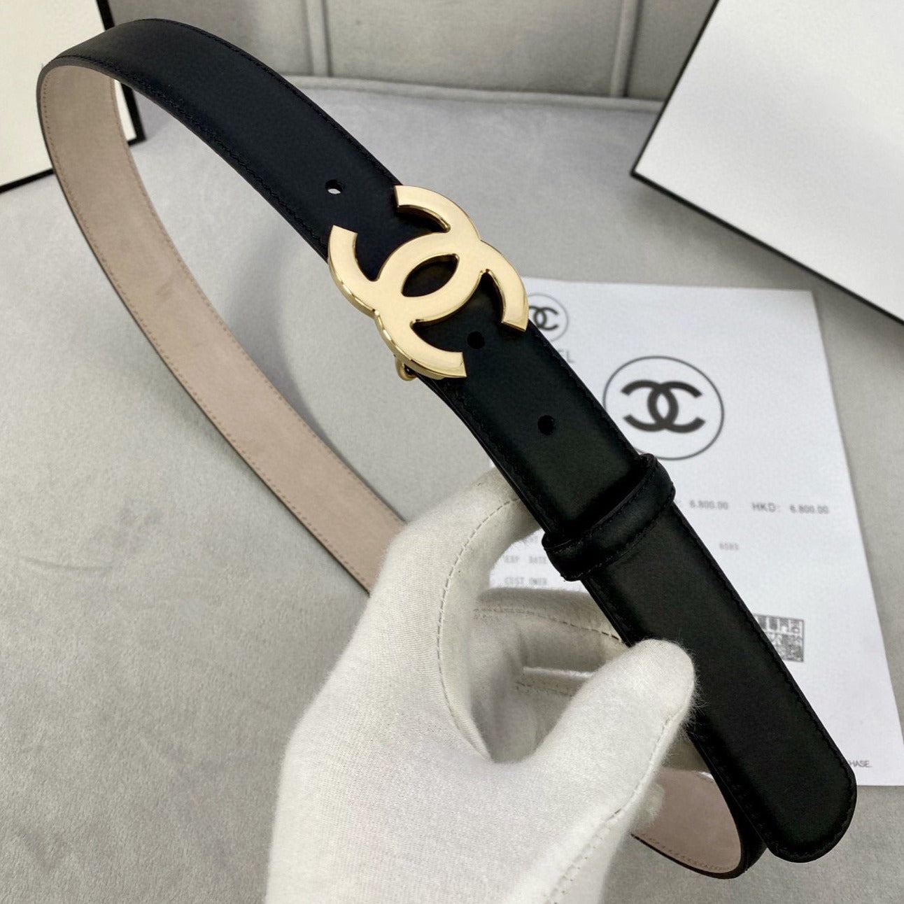 CC WOMEN'S BELT 3.0CM LEATHER BLACK BUCKLE GOLD