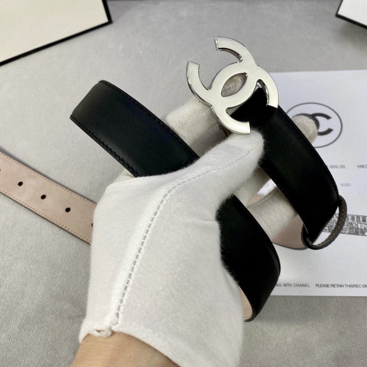 CC WOMEN'S BELT 3.0CM LEATHER BLACK BUCKLE SILVER