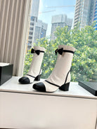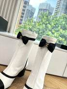 CC 25 Short Boot White Calfskin Black Bow 430317