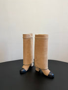 CC Hight Boots Dark Beige With Chain Suede And Cowhide 944969