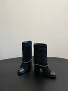 CC Short Boots Black With Chain Suede And Cowhide 944963