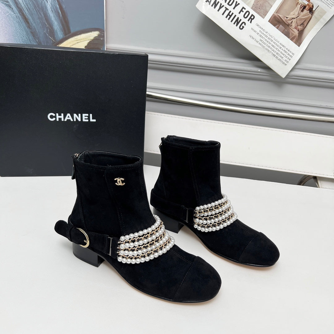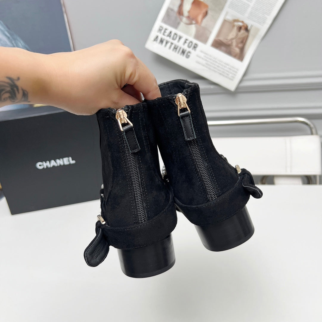 CC 25 Short Boot Black Calfskin Black Bow 430319