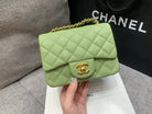 MINI SQUARE FLAP BAG 17CM GREEN CAVIAR GOLD HARDWARE